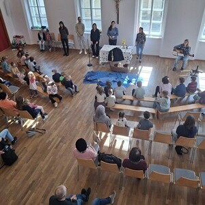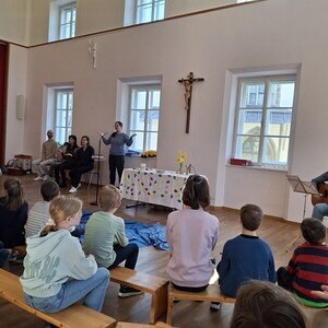 Am 5. Fastensonntag feierte eine große Kinder- und Familienschar einen Kindergottesdienst im Gallus-Saal. Das KiLi-Team erzählte in der wundervollen Feier die Geschichte wie Jesus einen Sturm auf dem See besänftigte und damit seinen Jüngern half. Dabei wurde mit dem Schwungtuch der Wellengang und Wind für die mitfeiernden Kinder erfahrbar um die ängstlichen Jünger im Boot besser zu verstehen. Die starke Botschaft: Gott ist auch und gerade in stürmischen Zeiten für uns da! Jesus schenkt uns neuen Mut!