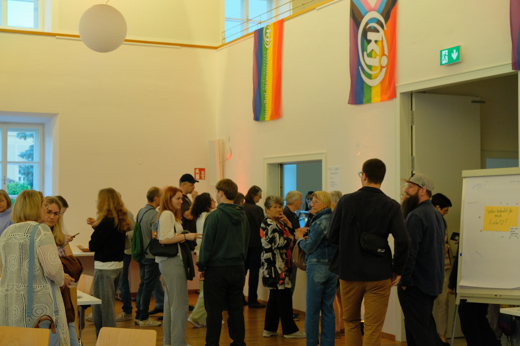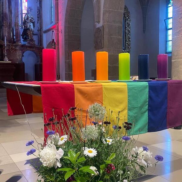 Am Sonntag konnten die Besucher:innen der Gottesdienste auch noch die Gastfreundschaft der KJ erleben und bei Kaffee und Kuchen im regenbogenbunten Gallussaal das Wochenende genießen.
