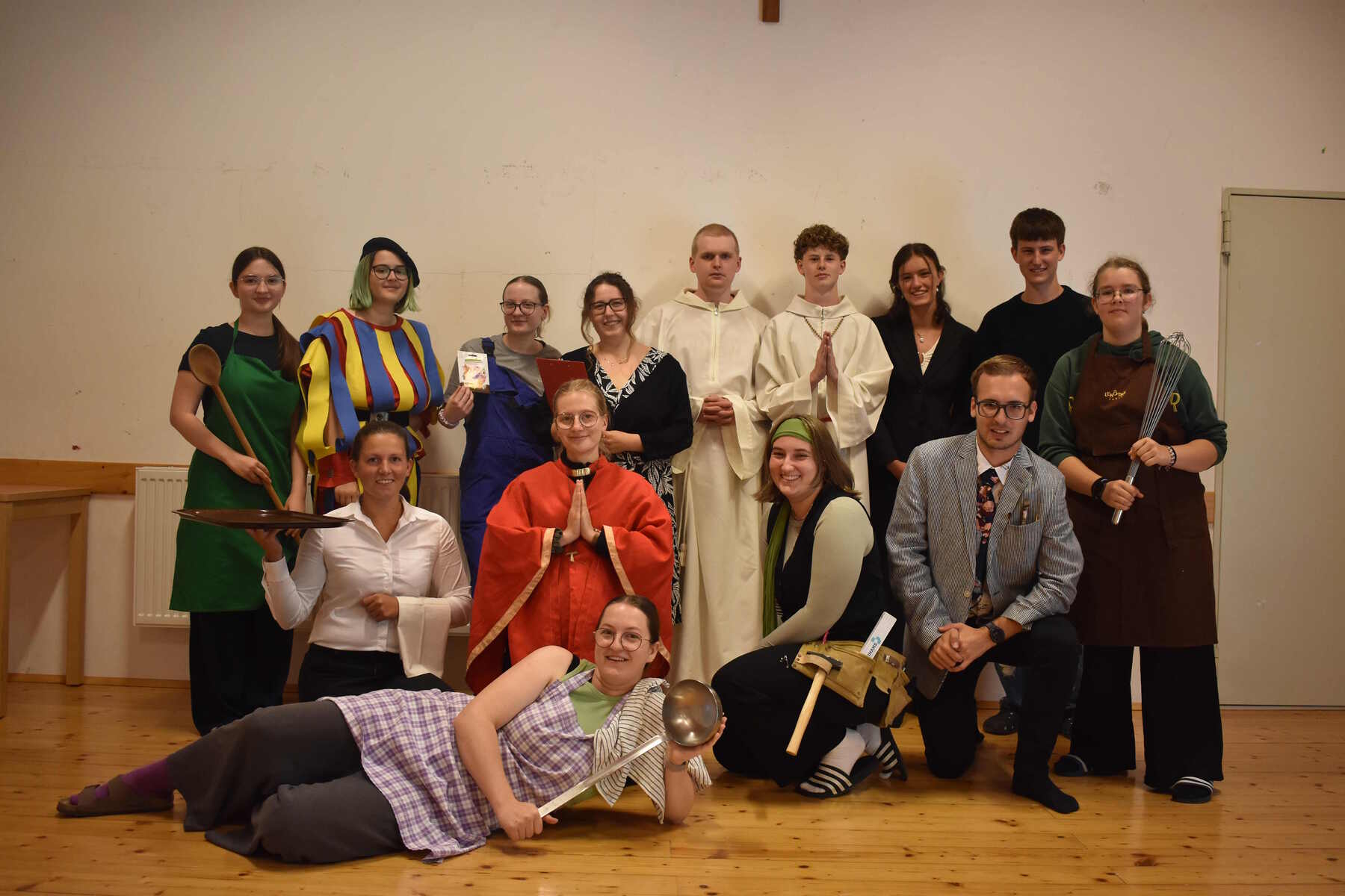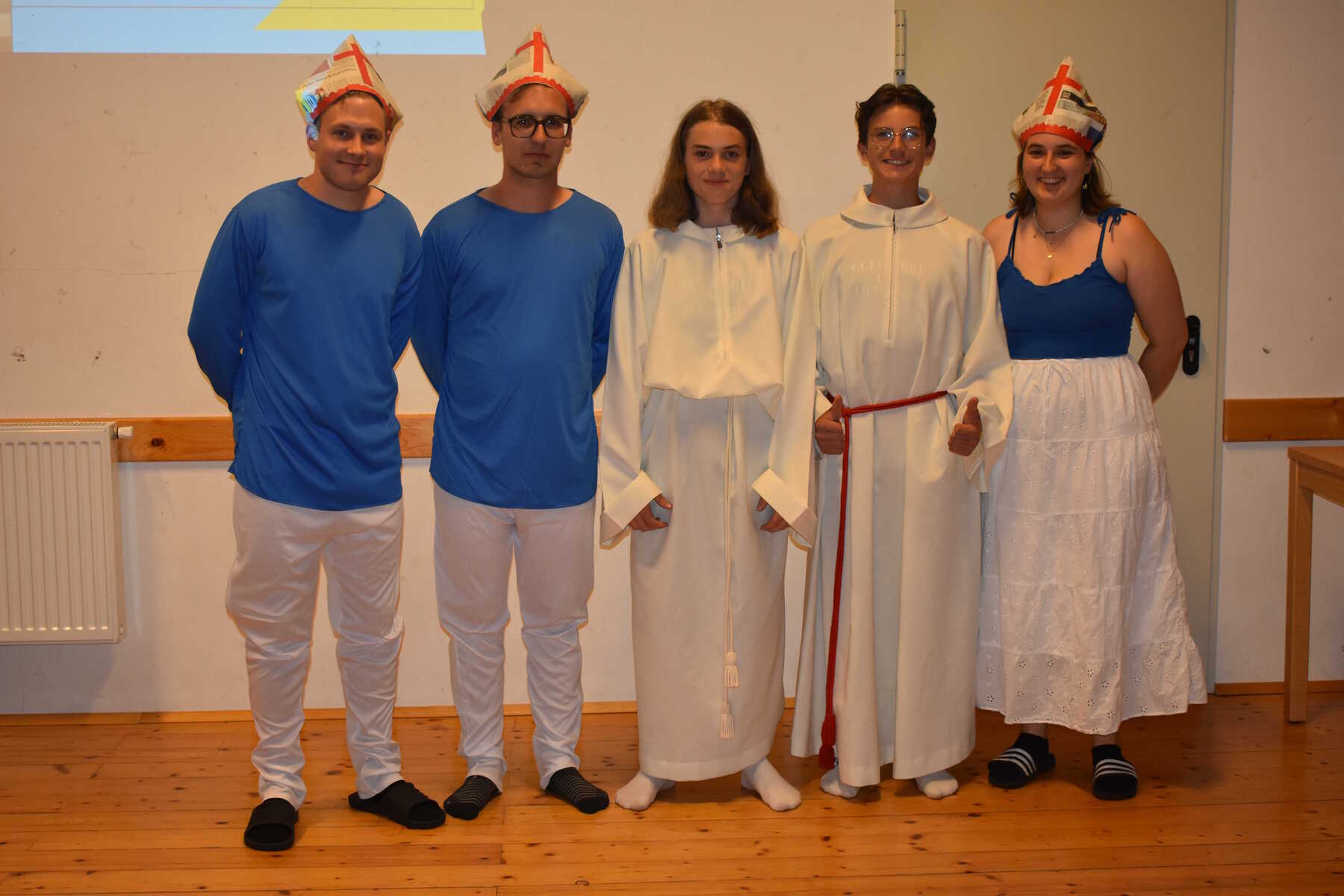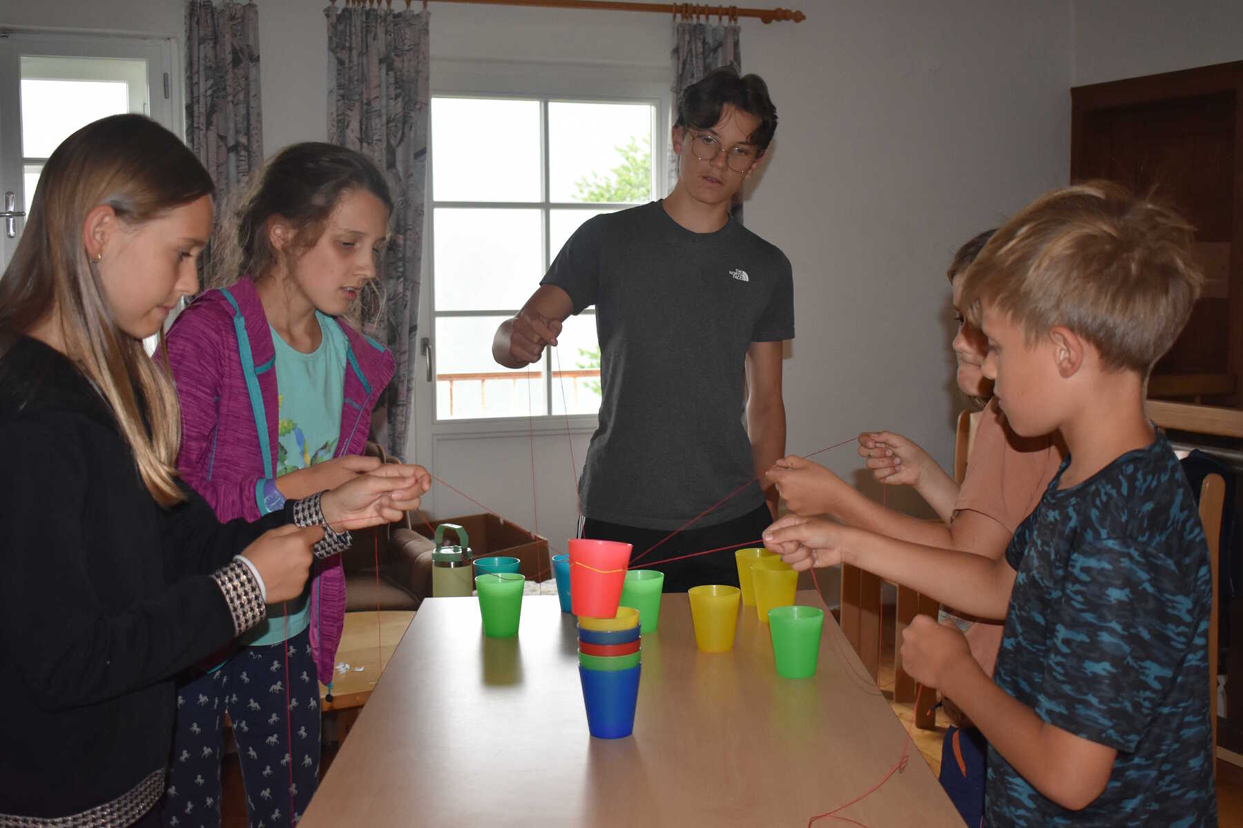 Wie jedes Jahr starteten wir mit einer Hausrallye, bei der wir unsere Unterkunft kennenlernten und beispielsweise die Signation auswählten und Türschilder gestalteten. Am Abend sammelten die Kinder bei "Siedler von Galli" bei Sportübungen verschiedene Rohstoffe, um sich einen Weg durch das Spielfeld zu bauen. Am Dienstag machten wir einen Ausflug ins Stift Schlierbach, wo wir eine Stiftsführung und auch eine Käseverkostung bekamen, am Abend standen dann Fußball, tanzen oder verschiedene Spiele auf dem Programm. Am Mittwoch konnten dann alle kreativ werden: Bei den Workshops bastelten wir Traumfänger und Stiftehalter, formten Figuren aus Salzteig, schöpften eigenes Papier, bemalten Müslischüsseln oder bekamen Haarsträhnen. Am Nachmittag traten dann die Kinder in verschiedenen Disziplinen gegen die Gruppenleiter:innen an - und mussten sich leider am Ende geschlagen geben. Am Abend rätselte ein Teil der Kinder gemeinsam bei einer Schnitzeljagd, während der andere Teil bei "Among Us" versuchte, die Impostors zu finden. Beim Krimispiel am Donnerstag lösten wir dann einen Mord und einen Kunstraub im Vatikan, am Nachmittag gab es Chemie-Experimente, verschiedene Challenges sowie eine Feuerwehr-Show und statt dem Lagerfeuer machten wir am Abend wetterbedingt einen Filmabend. Beim Thema am Freitag lernten alle mehr über unsere Kirche, am Nachmittag spielten wir verschiedene Spiele wie Bingo oder Stadt-Land-Fluss, bevor wir gemeinsam den Gottesdienst feierten. Dann war es auch schon Zeit für den Hüttenabend mit vielen tollen Einlagen der Kinder, Ehrungen, Taufen und ganz viel Tanzen.