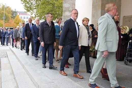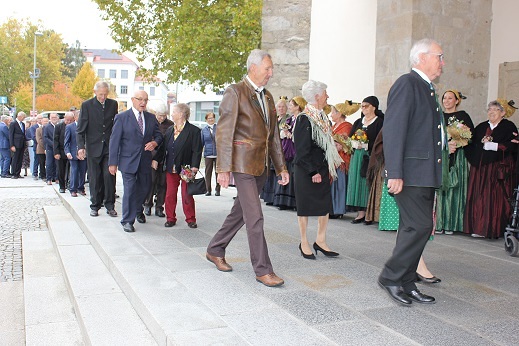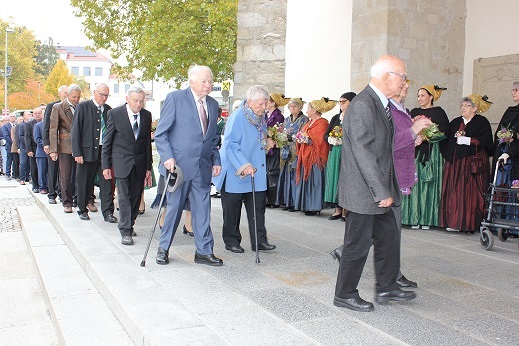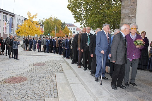 1 Gnaden, 3 Eiserne, 5 Diamantene, 13 Goldene und 7 Silberne Hochzeitspaare feierten am 12. Okt. im Rahmen des 10.00 Gottesdienstes mit Benjamin Hainbuchner und Michael Münzner ihr Jubiläum. Musikalisch umrahmt wurde der Festgottesdienst vom Kirchenchor.