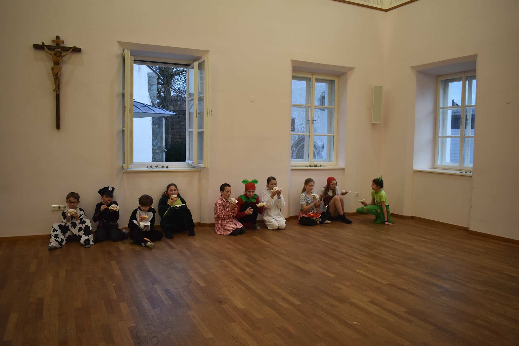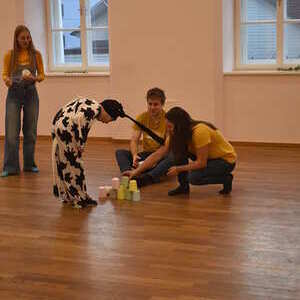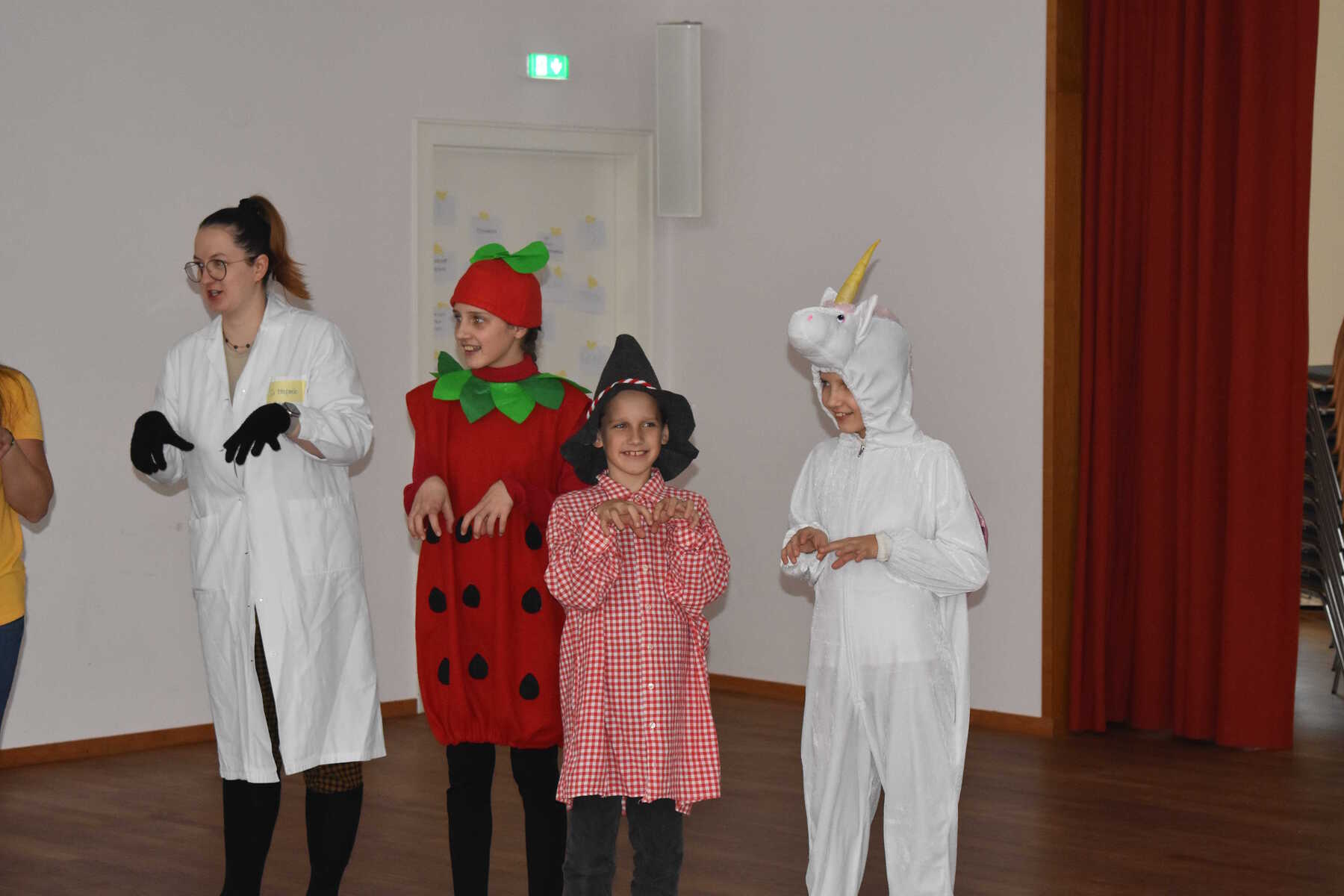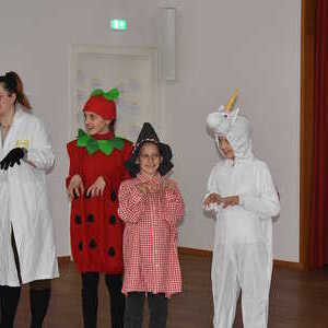 Beim heurigen Minifasching halfen die Kinder den Minions dabei, den Mond vom Bösewicht Vektor zurückzubekommen. Dazu mussten die Kinder zuerst ihren Boss Gru finden und ihm beweisen, dass sie gut schmuggeln können und sich beim Thema Minions auskennen. Danach entschlüsselten die Kinder noch eine hart erarbeitete Geheimschrift und schafften es dann bei Ninja und Gru vs. Vektor den Mond zurückzuholen. Zur Feier gab es für alle kleine Stücke vom Mond in Form von Krapfen, die sehr gut schmeckten!