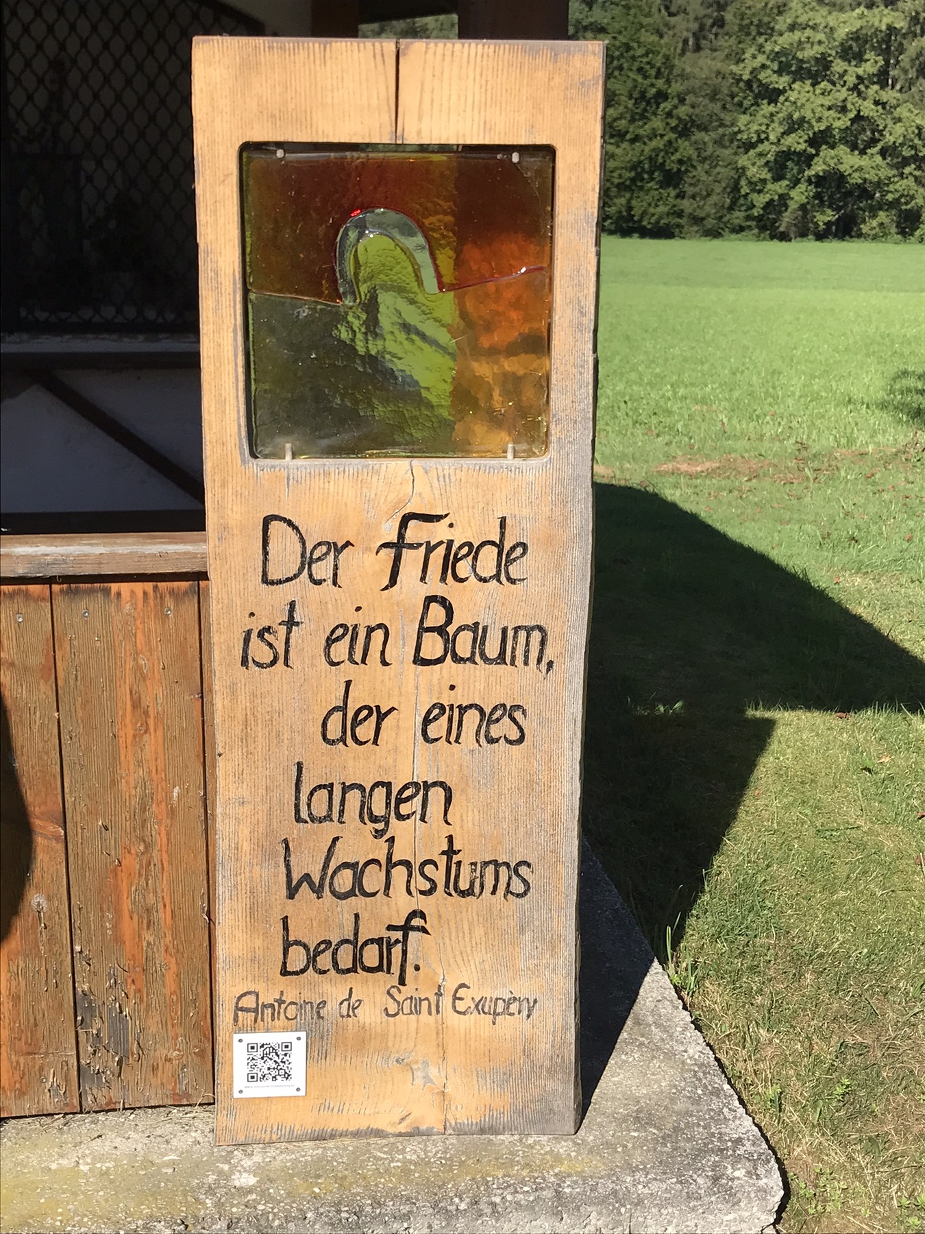 Auf dem gut 12 km langen Rundweg wurden an zwölf Stationen hölzerne Stelen* mit Sprüchen und Zitaten errichtet, an denen verschiedene Bereiche des Friedensthemas vertieft werden. Verschiedene Personen und Gruppen aus den beteiligten Gemeinden geben den Wanderern Gedanken und Wegimpulse mit und stellen Fragen. Der Weg führt durch eine sanft hügelige Landschaft des Alpenvorlandes und kann sowohl als Pilgerweg, als auch als (Familien-)Wanderweg „begangen“ werden.
