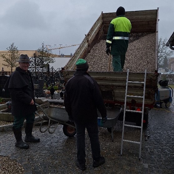 Trotz bescheidenem Wetter packten die Männer kräftig an und es wurden die Wege gekehrt, gereinigt, gekärchert, Kies zwischen den Gräbern aufgefüllt u.v.m., bis am Ende wieder alles glänzte - Herzlichen Dank dafür!