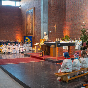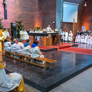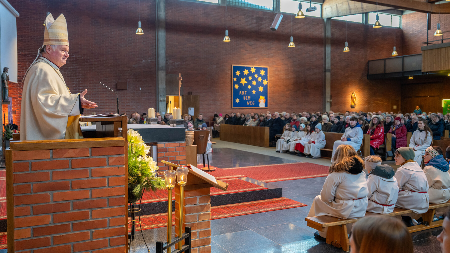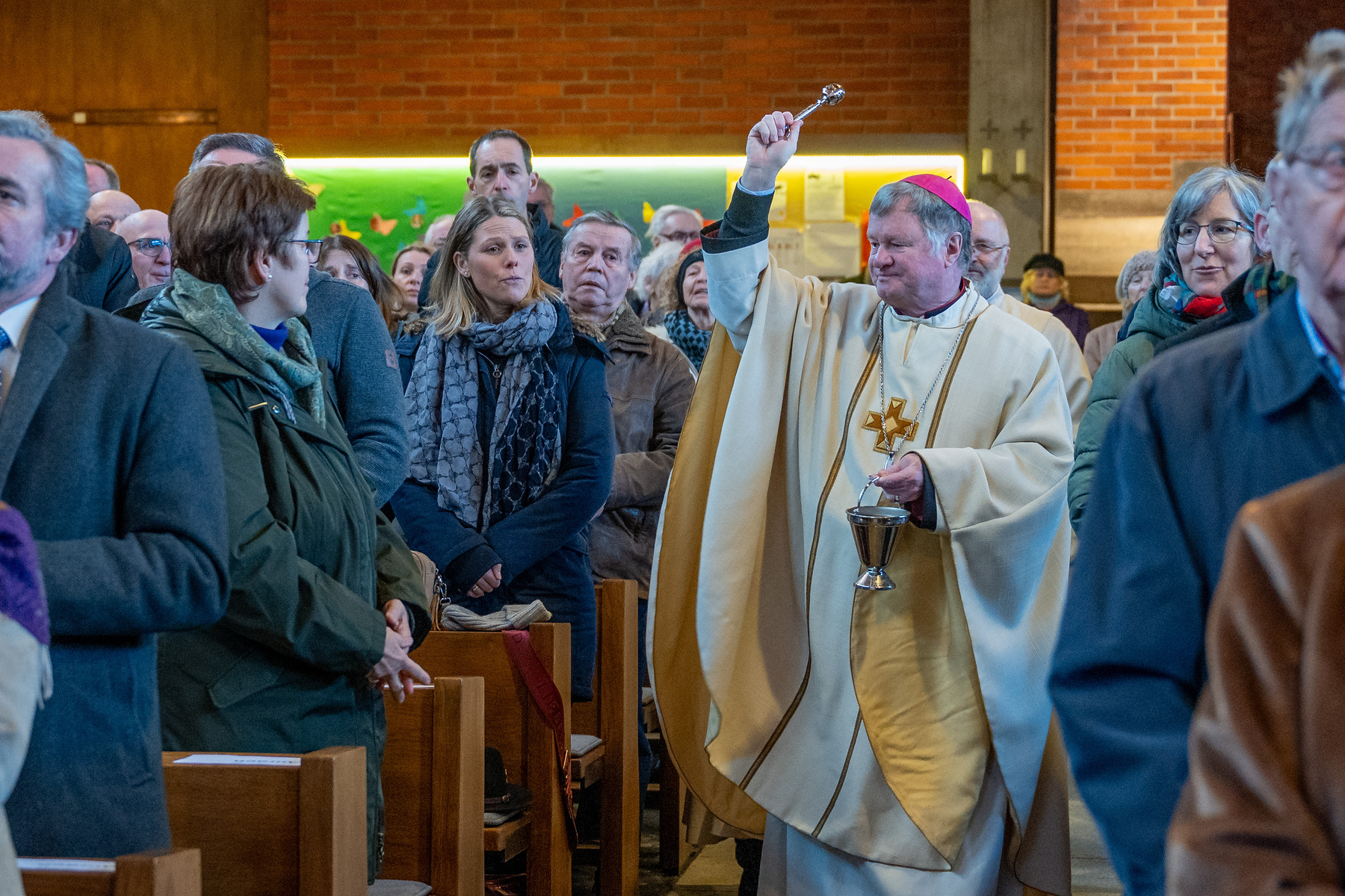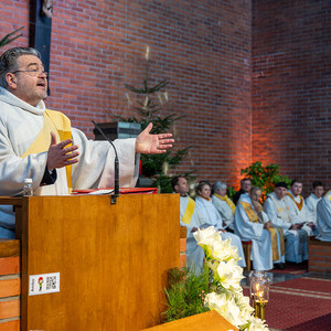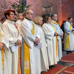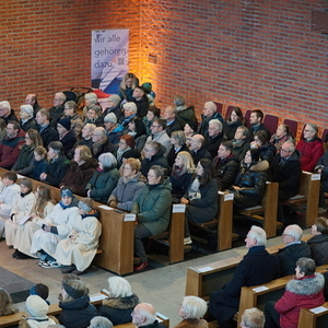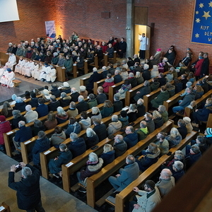 Eine Vielzahl von Gläubigen aus allen zwölf Teilgemeinden, haupt- und ehrenamtliche Mitarbeiterinnen und Mitarbeiter der Kirche, Ministrantinnen und Ministranten und Beauftragte für Wort-Gottes-Feiern füllten die große Timelkamer St. Josef-Kirche.