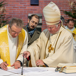 Bischof Manfred Scheuer setzte im Rahmen dieses festlichen Gottesdienstes Pfarrer Janusz Zaba, Pastoralvorstand Christian Landl und Veraltungsvorstand Christoph Ott in ihre Ämter ein.