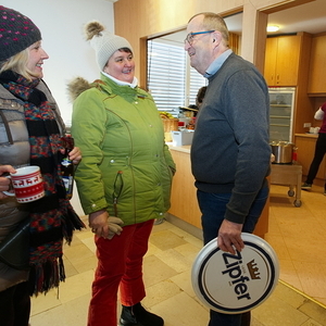 Nach dem Segen und dem Te Deum ging das Fest noch bei Kaffee und Kuchen, bei Speis und Trank angeregt weiter. Und es war allenthalben zu spüren: Die Sitzungen, die gemeinsamen Gottesdienste und Begegnungen in diesem Strukturprozess haben die Meschen und die Pfarrgemeinden rund um den See und entlang der Ager wirklich einander näher gebracht.