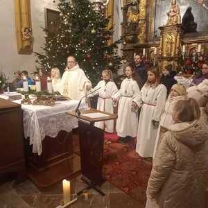 Im Rahmen der Kindermette wird ein Krippenspiel aufgeführt.