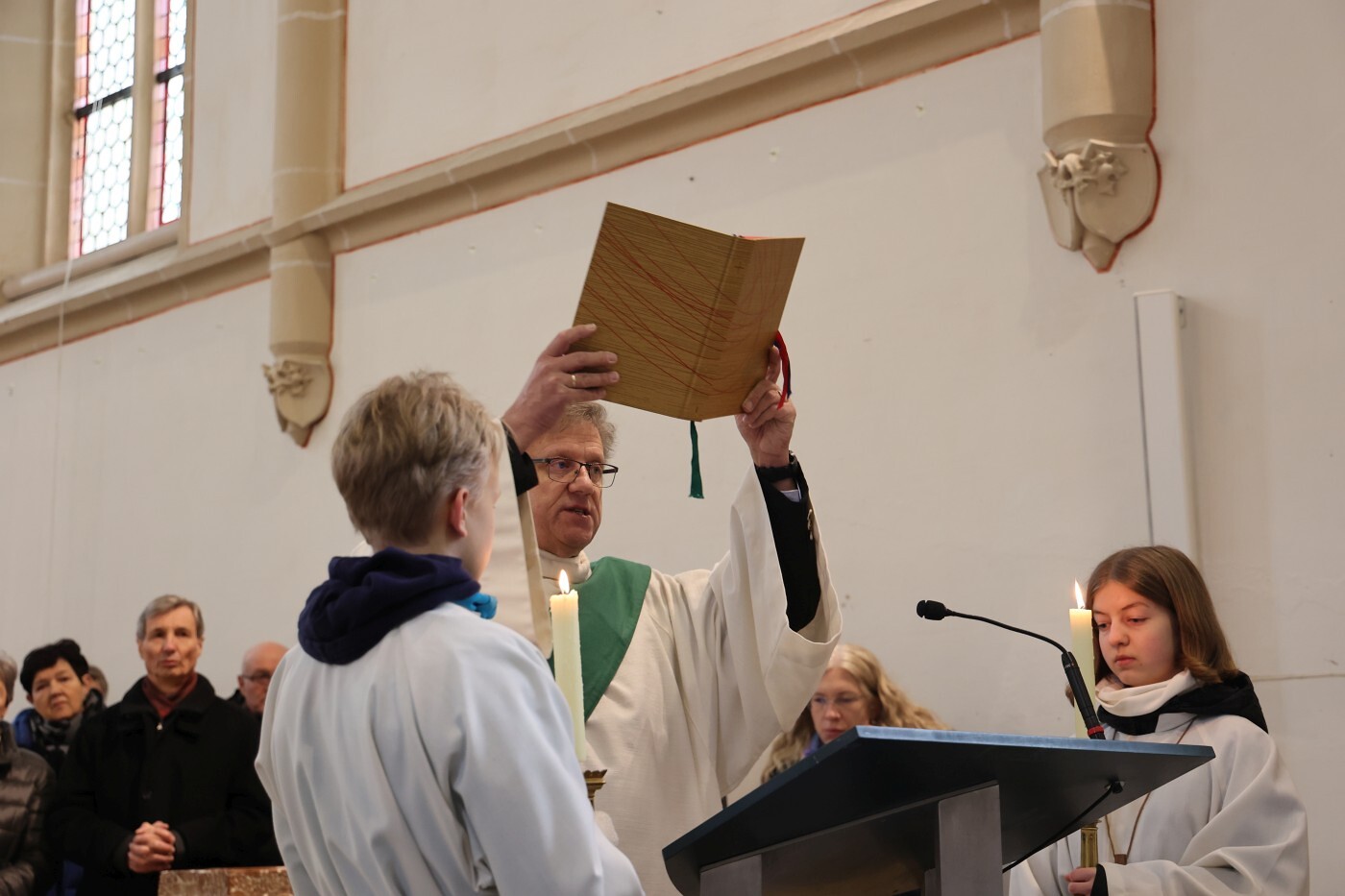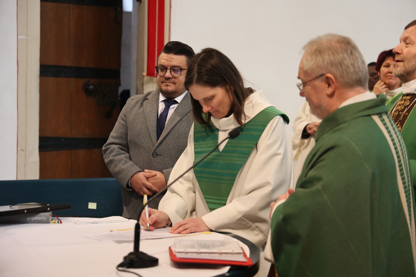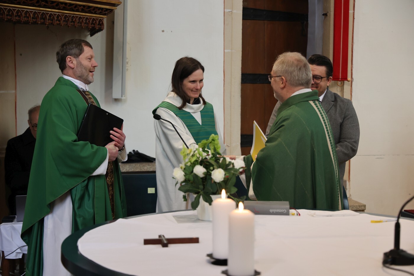 Pastoralvorständin Maria Krone unterstrich in ihren Worten, sie setze sich ein „für eine Kirche voll Menschen, die da sind, wenn jemand Nächstenliebe braucht, für eine Kirche, deren Kennzeichen freundliche Gesichter sind“. Wichtig sei ihr auch Zeit für das Eintauchen in spirituelle Tiefe, ein verlässliches Miteinander der Generationen und ein Gesprächsklima, das Versöhnung ermögliche. „Ich setze mich ein für eine Kirche, die Platz lässt für die Zukunft, denn das Puzzle des Reiches Gottes ist noch längst nicht komplett. Ich setze mich ein für eine Kirche, die in alldem Gott vertraut, dass er unser Leitstern ist und uns in die richtige Richtung führt“, so Krone.