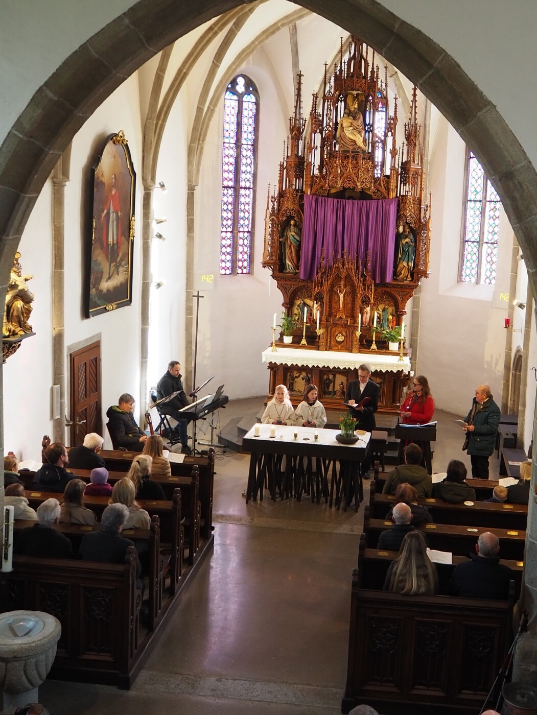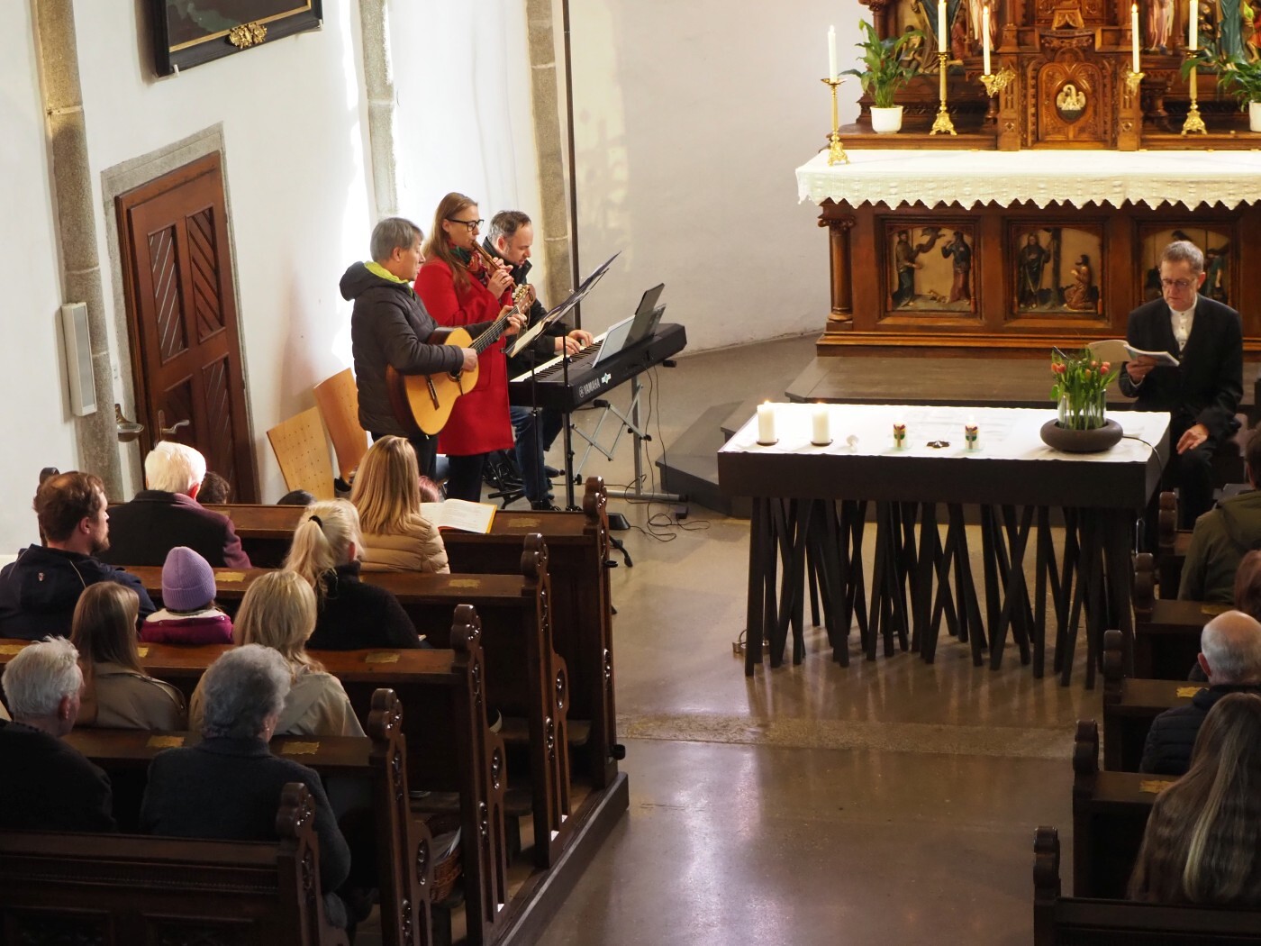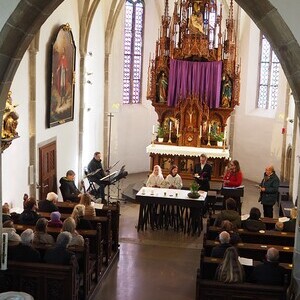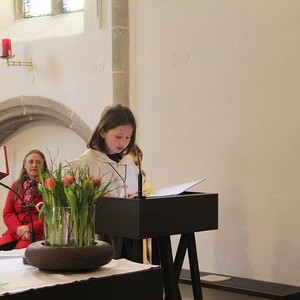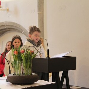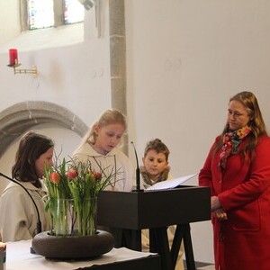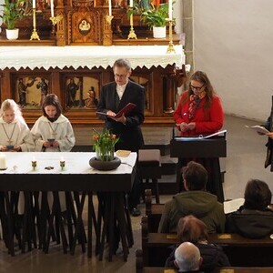 Das Thema Licht zog sich wie ein roter Faden durch den gesamten Gottesdienst. In der Lesung wurde eine Geschichte erzählt: Ein König stellte seine beiden Söhne vor die Aufgabe, eine große Halle zu füllen. Während der ältere Sohn sie mit wertlosem Material vollstopfte, stellte der jüngere eine Kerze in die Mitte. Ihr Licht erfüllte den ganzen Raum. Damit zeigte er, dass das Wichtigste nicht "Masse" ist, sondern das, was wirklich Orientierung und Hoffnung schenkt: das Licht.