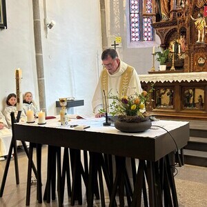 Im Evangelium vom „ungläubigen Thomas“ wurde gezeigt, wie Zweifel durch die Begegnung mit dem auferstandenen Jesus überwunden und Glaube wachsen kann. Pfarrkurat Reinhard Bell ging in seiner Ansprache unter anderem auch auf den „ungläubigen/zweifelnden Thomas ein“, denn Jesus sagte zu Thomas: „Du glaubst jetzt. Weil du mich gesehen hast. Andere Menschen können mich nicht sehen. Und glauben trotzdem, dass ich lebe. Diese Menschen dürfen sich freuen.“