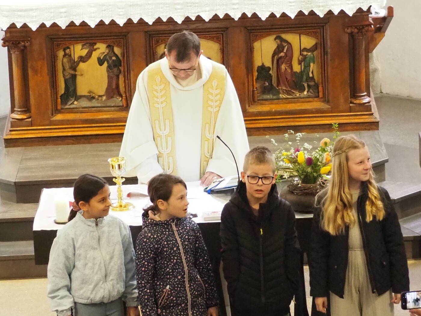 Im Rahmen des Gottesdienstes am 12. April haben sich die Kinder in der Pfarrgemeinde vorgestellt: