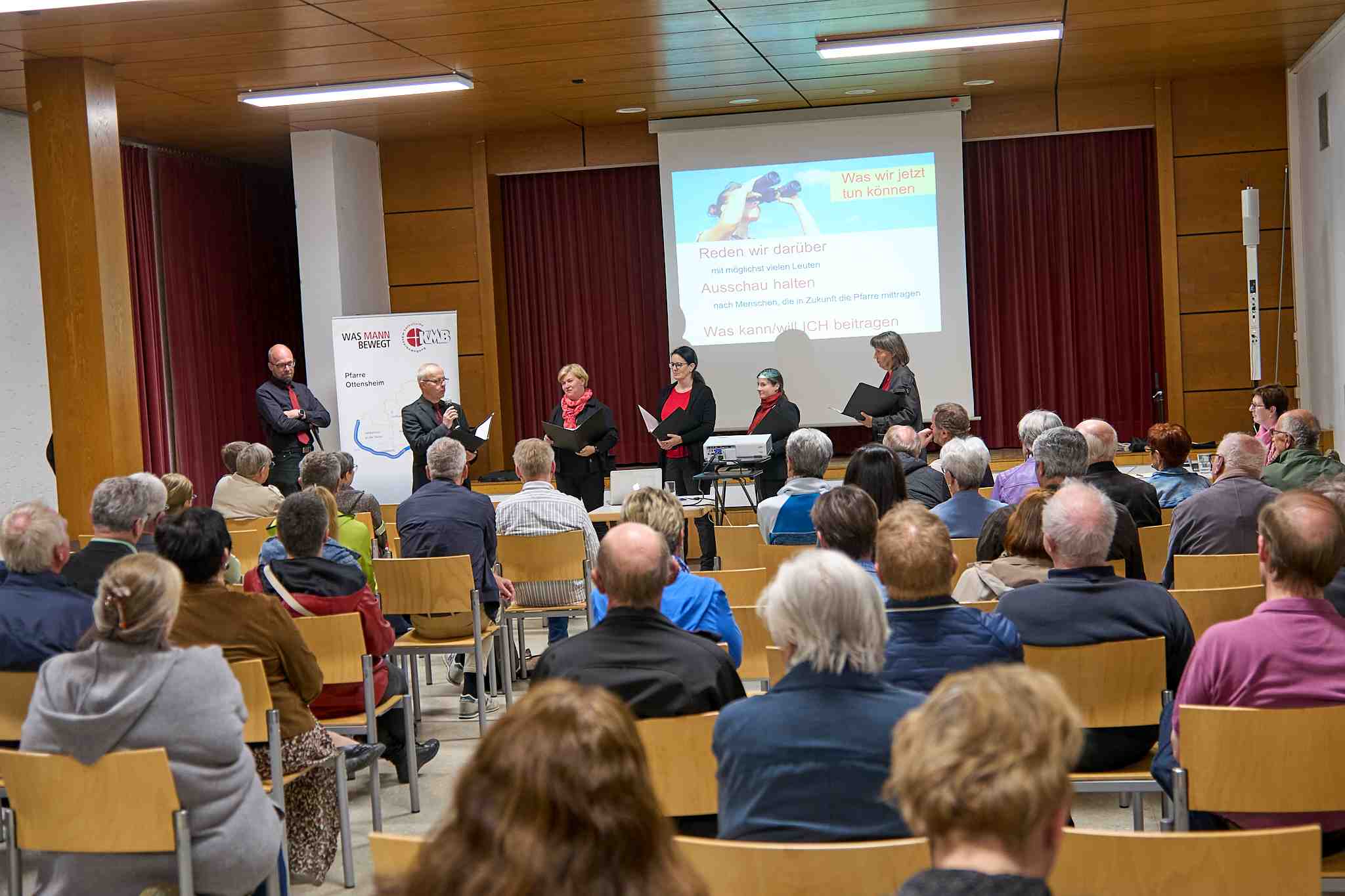 Nach der Abendmesse am 4. Mai nutzten ca. 80 Interessierte die Möglichkeit sich über den geplanten Zukunftsweg im Rahmen einer Pfarrversammlung zu informieren. Nach dem offiziellen Teil, der musikalisch vom Ensemble Vokagram unter der Leitung von Georg Rath umrahmt war, gab es zum Abschluss im Rahmen einer Agape noch die Möglichkeit zum gemeinsamen Gespräch.