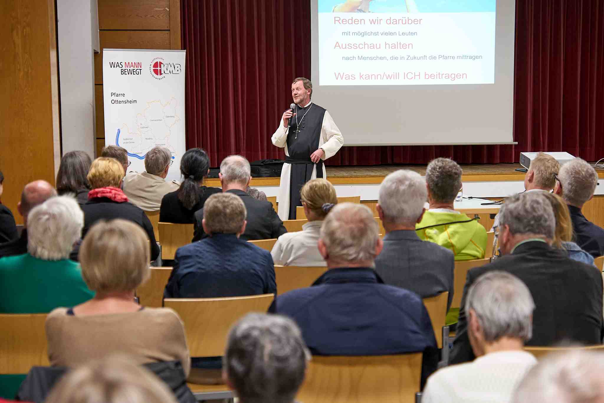 Dekanatsassistent Matthäus Fellinger erklärte in seiner Präsentation den bereits 2017 gestarteten Prozess in der Diözese um eine für die Gesamtkirche aber speziell auch für die Kirche vor Ort passende zukunftsfähige Lösung zu finden.