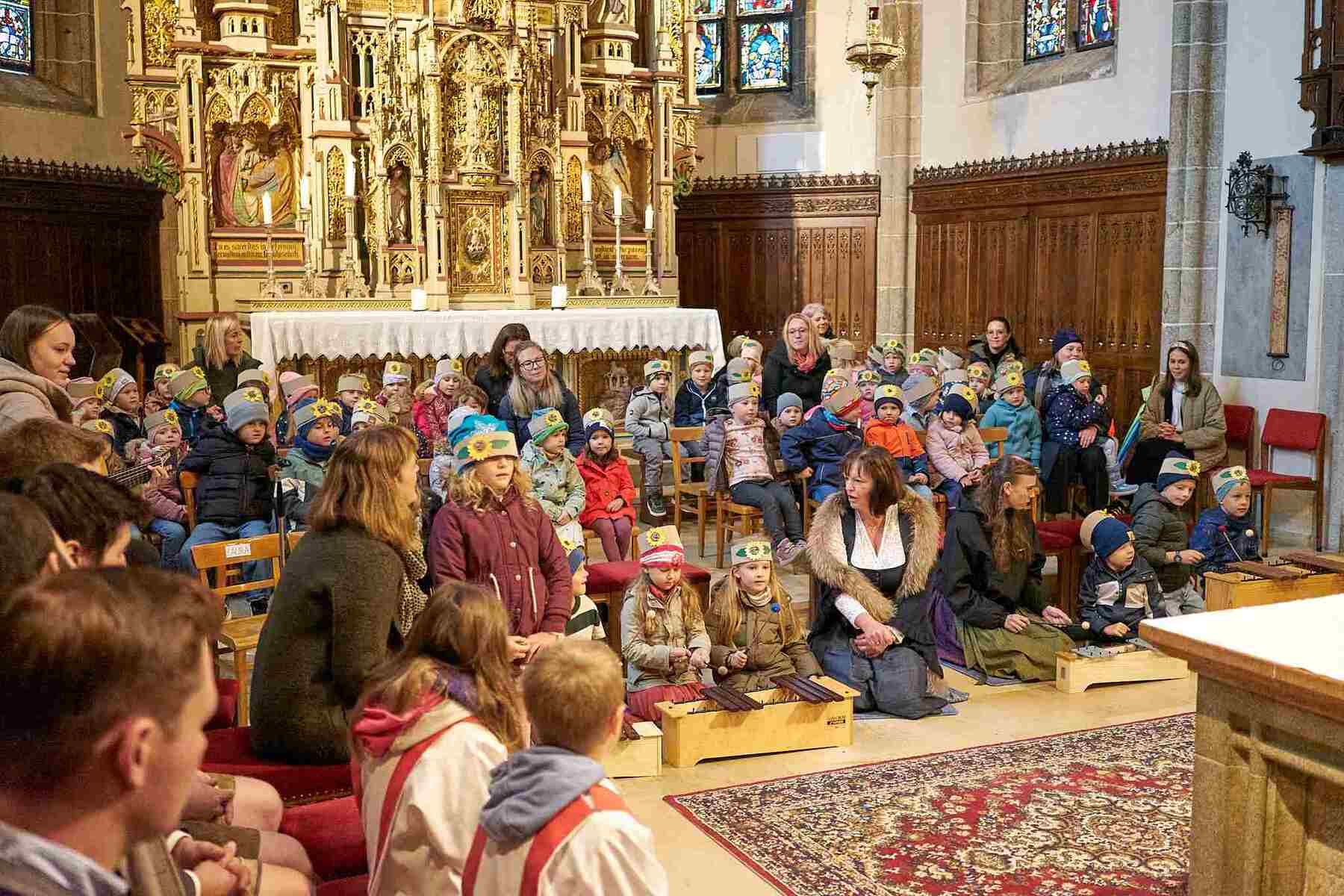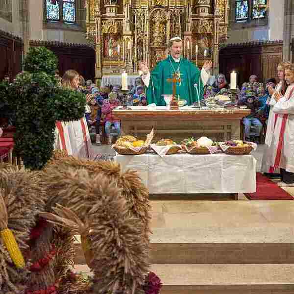 Beim Festgottesdienst hat Abt Reinhold die Bedeutung des Dankens betont. Auf das Dankbar-sein haben auch die Kindergartenkinder in ihren Liedern beim Gottesdienst aufmerksam gemacht.