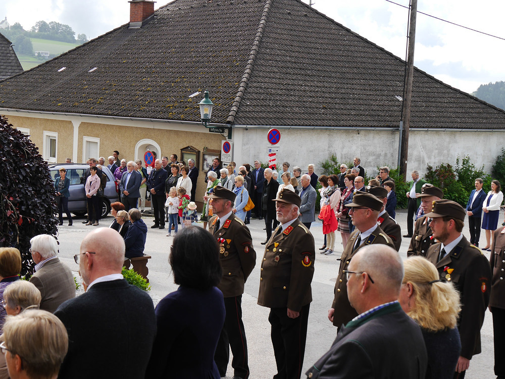 Danke an die teilnehmenden Vereine, der Feuerwehr für die Ehrengarde und den Ordnerdienst sowie dem Ensemble der Musikkapelle für die musikalische Gestaltung. Danke auch an alle, die das Fest vorbereitet haben (Birken aufstellen, Kranzerl binden, Blumenschmuck, ..).
