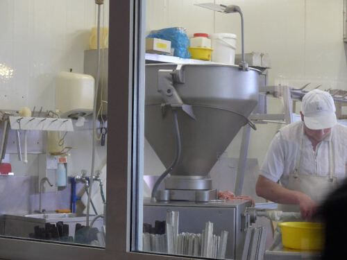 ein Fenster konnten wir den Fleischern bei der Fleischzerlegung und bei der Wurstproduktion