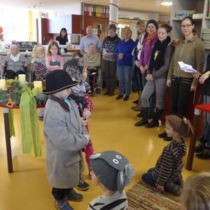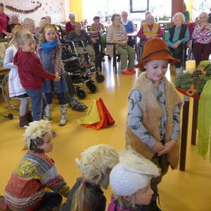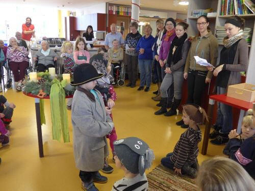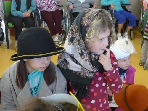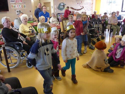 das Bezirksseniorenhaus getragen wurde. Die Kinder und ihre Begleiterinnen wurden vom