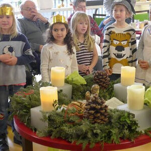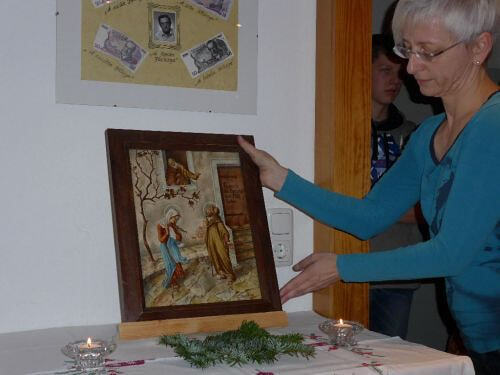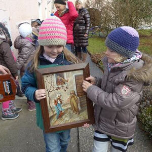 betend mit dem Bild gemeinsam in die Kirche zur Kindermette um 16.00 Uhr.