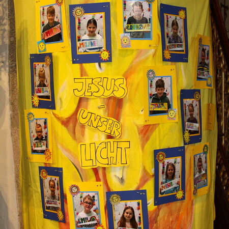 Zum heurigen Thema „JESUS – unser Licht“ das unsere Erstkommunionkinder gewählt haben, gestalteten sie mit ihrer Religionslehrerin Martina den Vorstellgottesdienst mit Tauferneuerung.