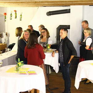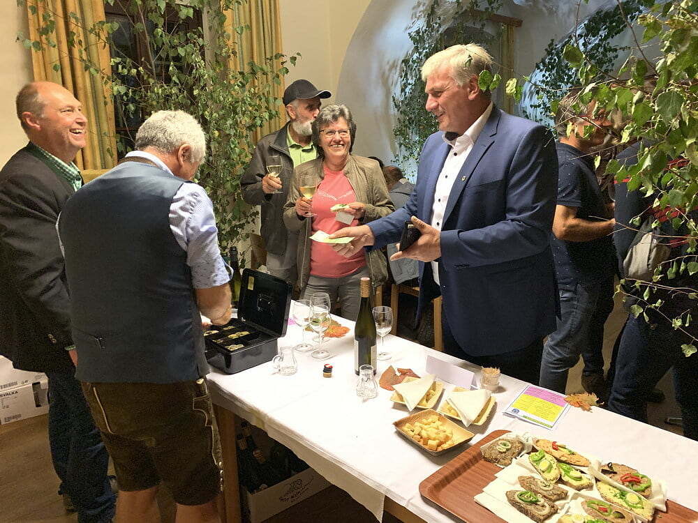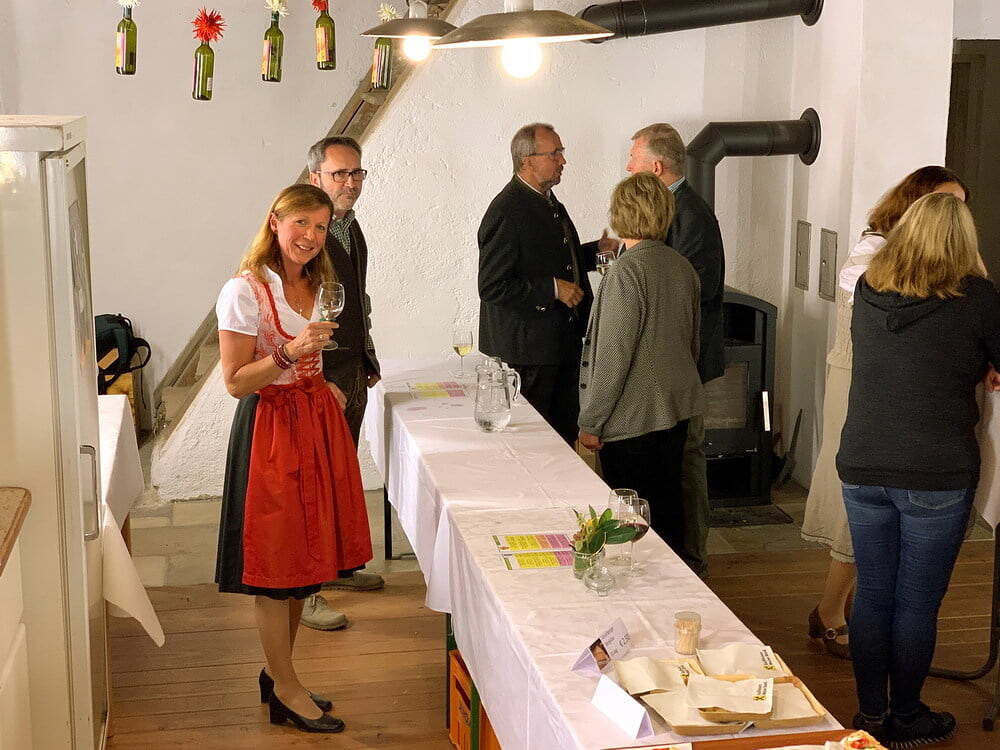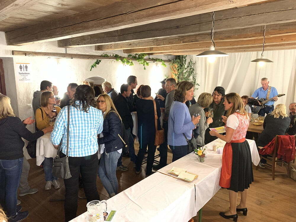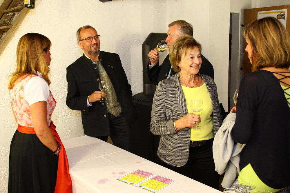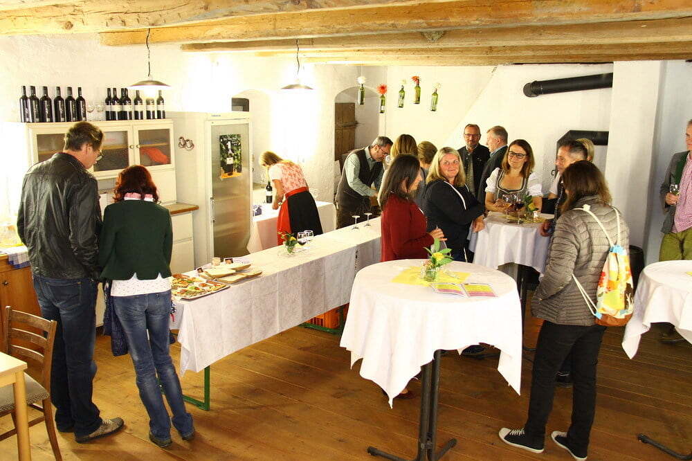 Die Weine aus verschiedensten Regionen Niederösterreichs wurden im gemütlich dekoriertem Pfarrhof zum Verkosten angeboten. Mit wenigen Schritten konnte man das „Bundesland“ wechseln. So wurden im nebenstehenden Wirtschaftsgebäude, sowohl am Heuboden als auch in der alten Knechtstube die Weine aus dem Burgenland ausgeschenkt und im historischen Kuhstall die Weine aus der Steiermark verkostet.