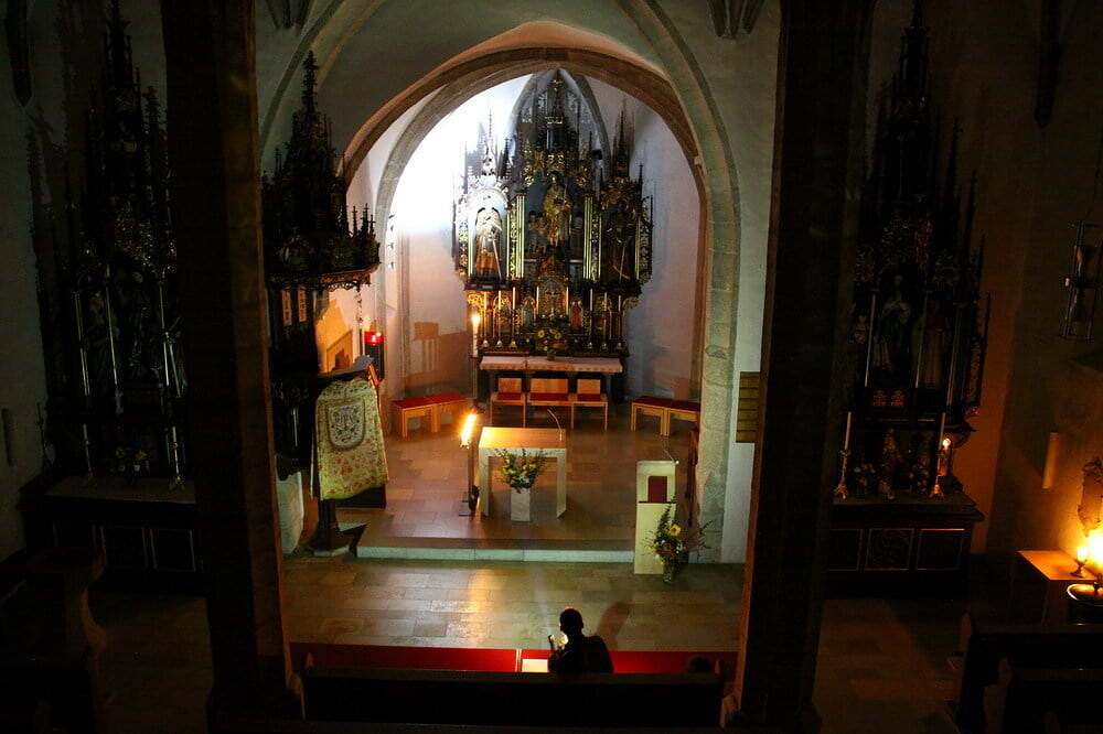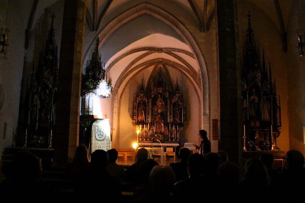 Ein Highlight war die Kirchenführung bei Dunkelheit von Pfarrassistent Peter Keplinger. Bei Taschenlampenlicht konnte das gotische Bauwerk und seine Geschichte den Besuchern auf eine besondere Art nähergebracht werden.