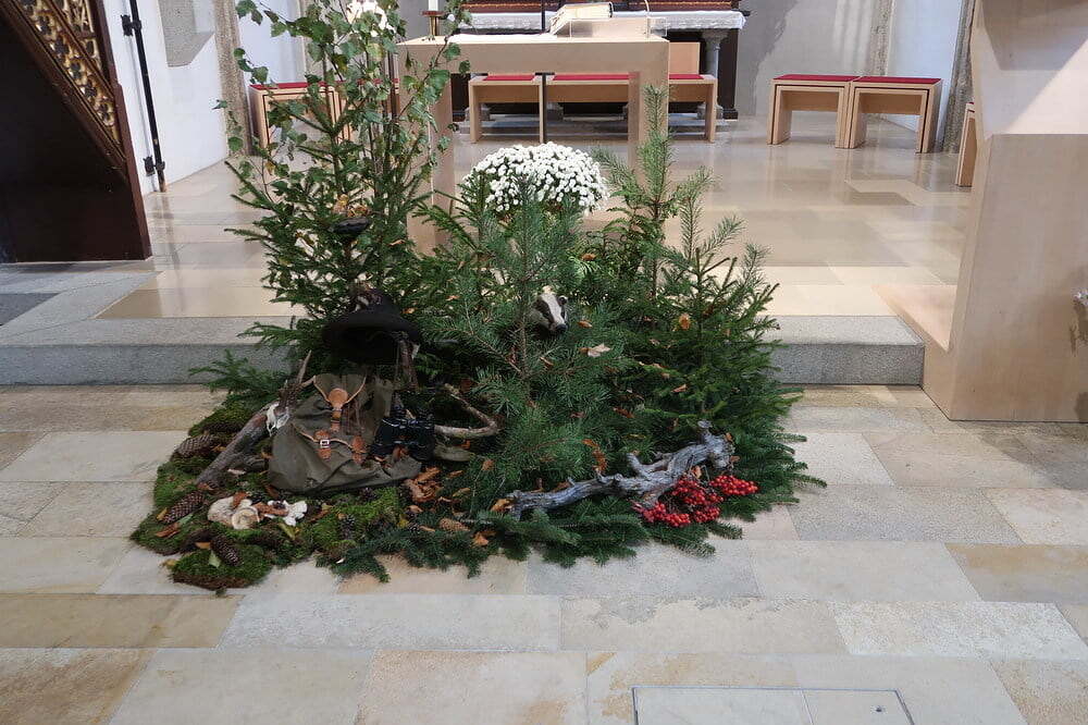 Eröffnet wurde die Eucharistiefeier mit dem Einzug in die feierlich geschmückte Kirche der Hubertuskreuzträger, gefolgt von den Jägerinnen und Jägern.