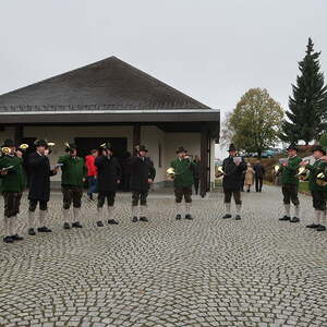 Zum Gedenken an die verstorbenen Jagdkameraden und dem Heiligen Hubertus wurde am Kriegerdenkmal Inne gehalten.