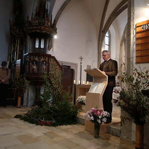 Pfarrmoderator Franz Mayerhofer zelebrierte das von ihm genannte „Erntedankfest der Jagd“, begleitet von den wunderschönen Klängen der Jagdhörner und der Orgel.