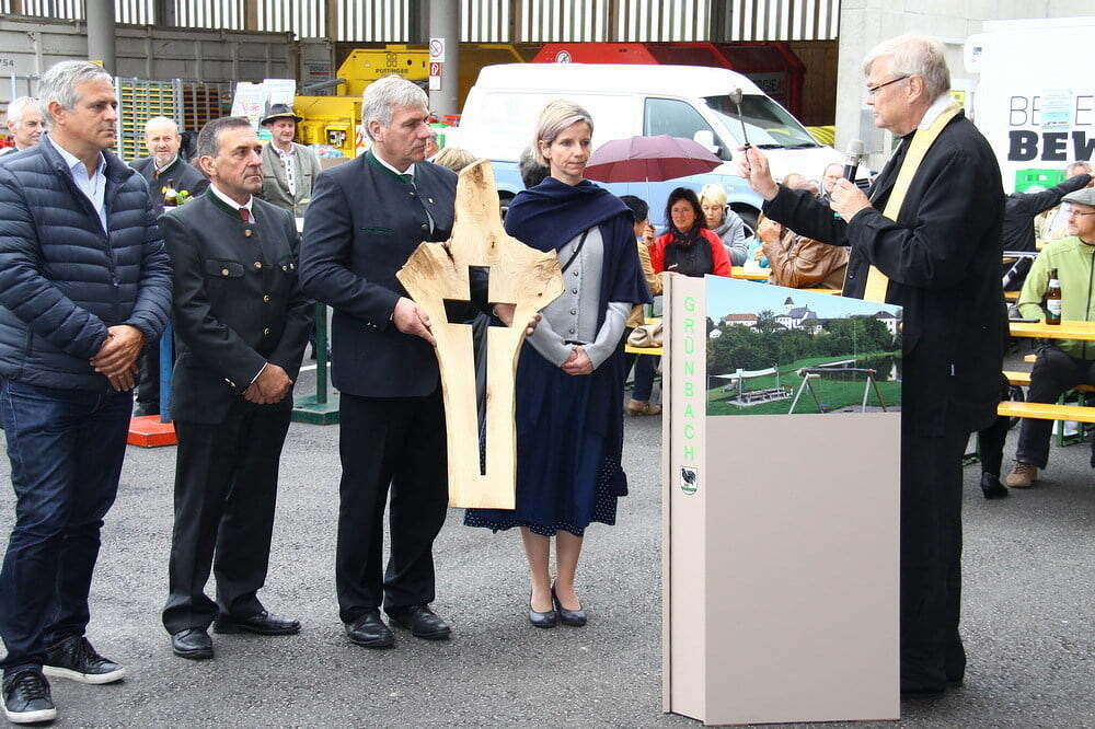 Am Ende des Gottesdienstes lud Bürgermeister Stefan Weißenböck die ganze Pfarrbevölkerung ein, in einem Festzug zum neu errichteten Altstoffsammelzentrum-Bauhof-Bioenergie zu ziehen und dieses offiziell zu eröffnen und zu segnen.