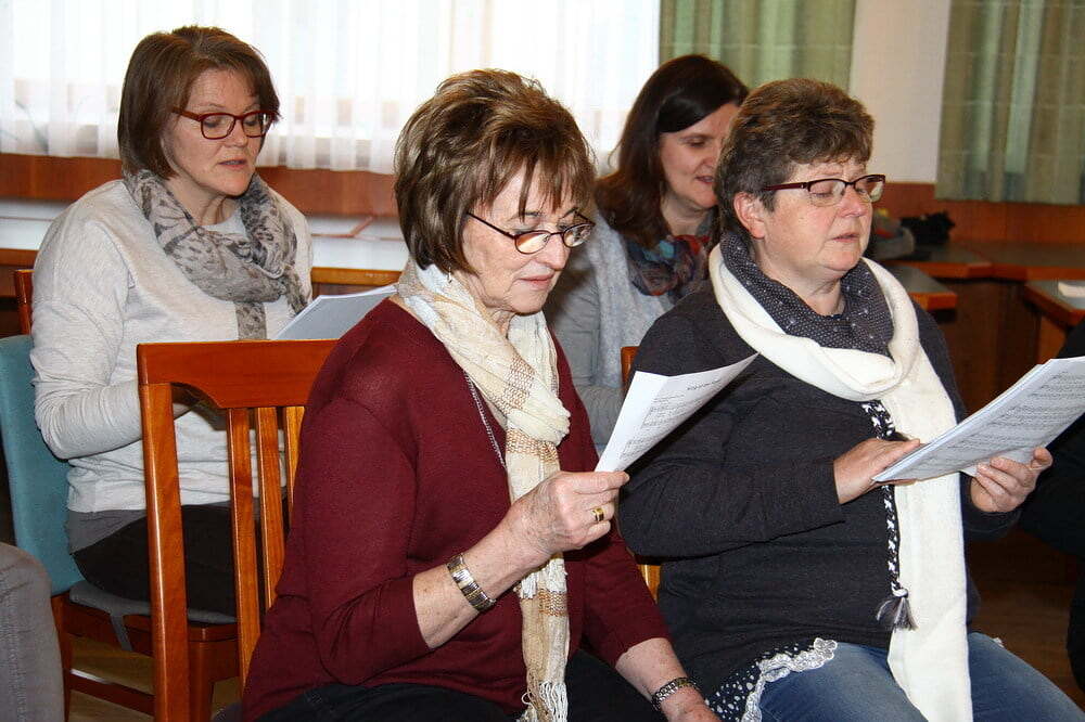 Aus diesem Grund begab sich der Kirchenchor an einem kalten Februarsamstag nach Windhaag ins Gasthaus Wieser. Dort wurde ein wirklich intensiver Probentag abgehalten. Unsere Seminarleiterin Regina Kepplinger entlockte uns wohlklingende Töne und ließ den Sopran in ungeahnten Höhen singen. Mit ihrer begeisternden Art und ihrer Freude am Singen schaffte sie es, uns bis in den späten Nachmittag bei Stimme und bei Laune zu halten. Der Gesang wurde nur unterbrochen, um uns beim Mittagessen und bei einem wirklich ausgezeichneten Kuchenbuffet zu stärken.
