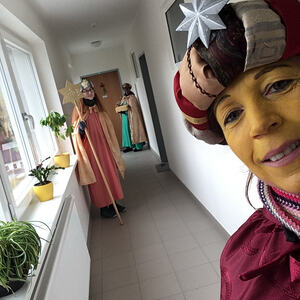 46 Sternsinger/innen im Alter von 10 bis 55 Jahre mit ihren Begleitern, die allen Menschen in unserer Pfarre ein segensreiches Neues Jahr wünschen;