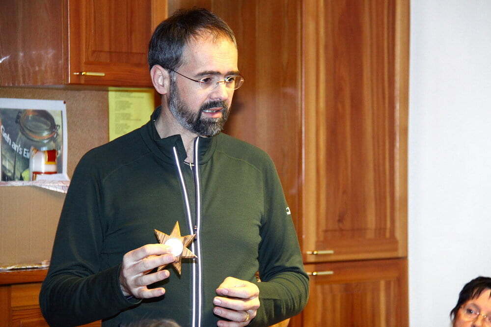Beim anschließenden gemütlichen Zusammensein im Pfarrhof wurde heuer allen ehrenamtlichen Mitarbeitern ein Olivenholzstern aus Emmaus als Dankgeschenk überreicht.