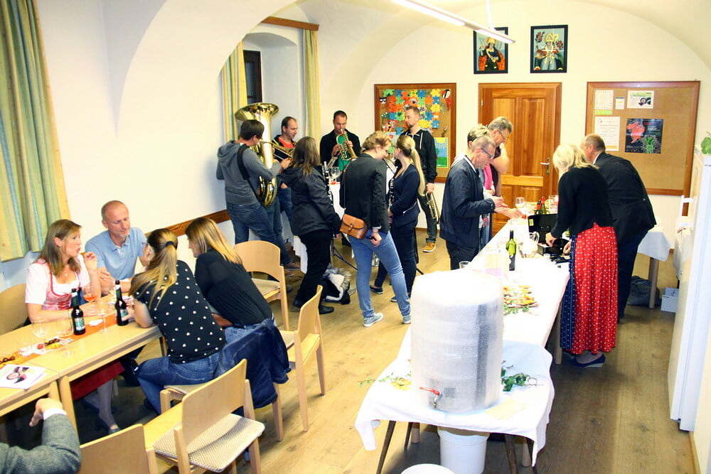Ein besonderes Ambiente herrschte beim Pfarr-Weinfest am 29. September 2017 in Grünbach. Dabei wurden im Pfarrhof, im Kuhstall und am Heuboden sowie in der Knechtstube zahlreiche verschiedene Qualitätsweine aus Niederösterreich, dem Burgenland und der Steiermark verkostet. In den schönen, herbstlich dekorierten Räumlichkeiten fanden die Gäste bei einem Glas Wein rasch in eine gute Laune. Ein kulinarischer Hochgenuss waren die Aufstrichbrote und der Bergkäse aus Vorarlberg.
