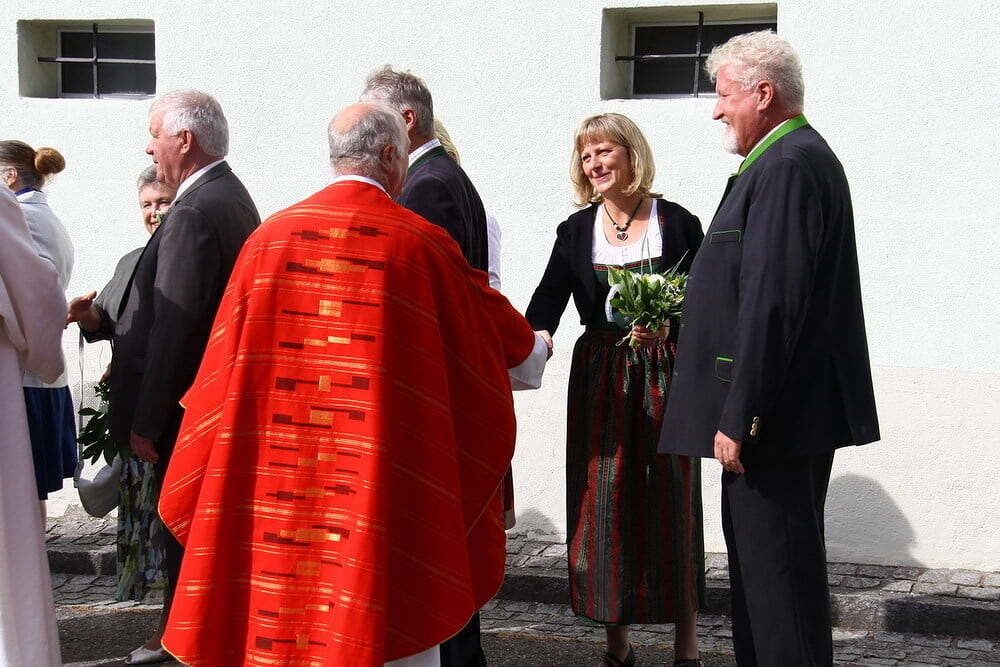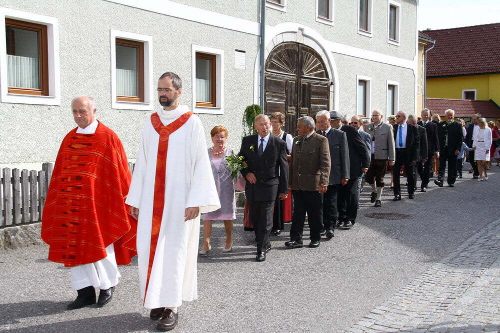 25, 40, 50, 55 oder sogar 60 Jahre Ehe nahmen 15 Jubelhochzeitspaare zum Anlass, bei einem festlichen Gottesdienst in unserer Pfarrkirche in Dankbarkeit für die gemeinsamen Ehejahre zu feiern. Musikkapelle mit feierlichem Festzug, Kirchenchor mit einfühlsamen Liedern, stilvolle Brautsträuße und Anstecker der KFB, Agape mit fruchtig/spritzigem Pfarrwein und das herrliche Sommerwetter boten ein wunderbares Rahmenprogramm.
