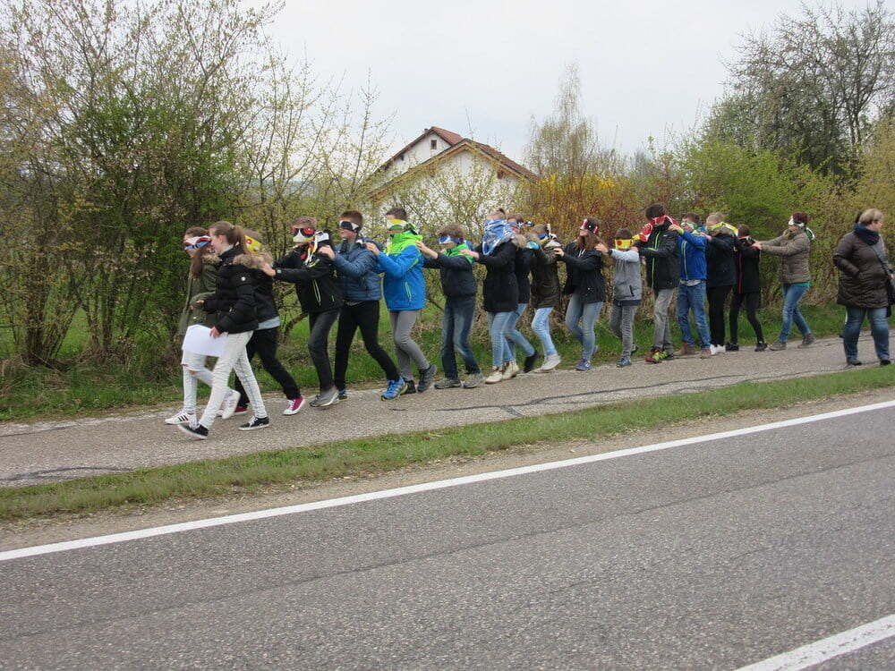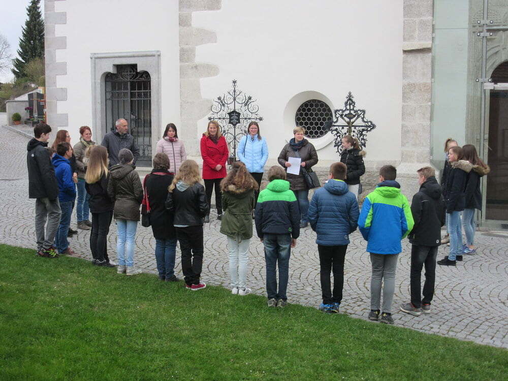 15 Firmlinge trafen sich mit einigen Firmbegleitern und „Zaungästen“ um 07.00 Uhr vor der Pfarrkirche, um sich auf die Spuren der Emmaus-Jünger zu begeben.