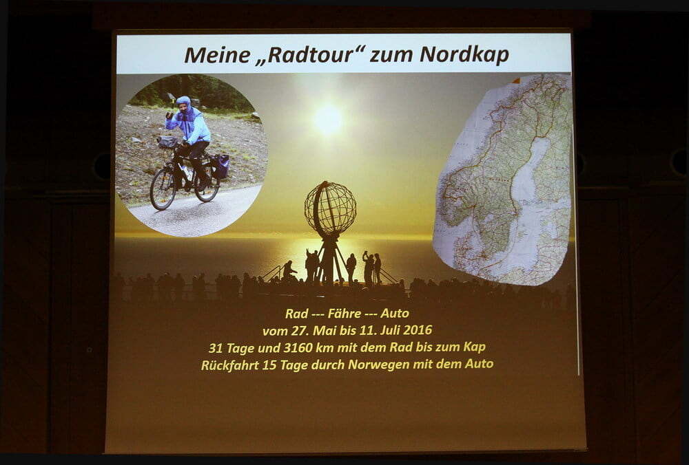 3160 km in 31 Tagen von Traberg aus über Tschechien, Polen, Schweden, Finnland nach Norwegen bis zum Nordkap führte die Reise im Mai 2016 mit dem "Drahtesel". Dass man hier einiges erlebt, schilderte Alfred Keplinger in einem höchst interessanten und gewohnt locker gestalteten Lichtbildervortrag am 17. März 2017 im Kultursaal in Grünbach.