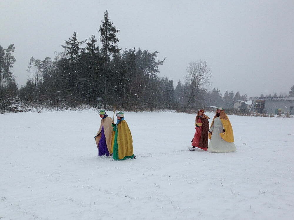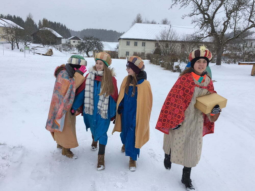 Trotz klirrender Kälte, Sturm und Schnee ließen sie sich nicht von ihrem Weg abbringen, für über 500 Sternsinger-Projekte in Afrika, Asien und Lateinamerika rund € 7.800,- in Grünbach zu sammeln.