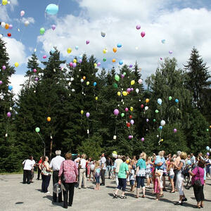 Zum750 Jahr Jubiläum organisierte der Pfarrgemeinderat, mit Obmann Reinhold Hofstetter, einen kunterbunten Luftballonstart.