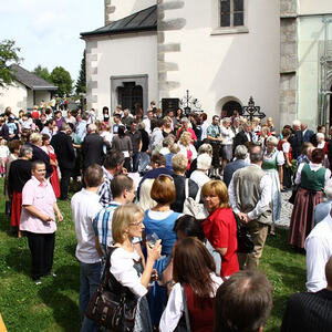 Im Anschluss an den Gottesdienst wurde am Kirchenplatz bei strahlendem Sonnenschein ausgiebig gratuliert.