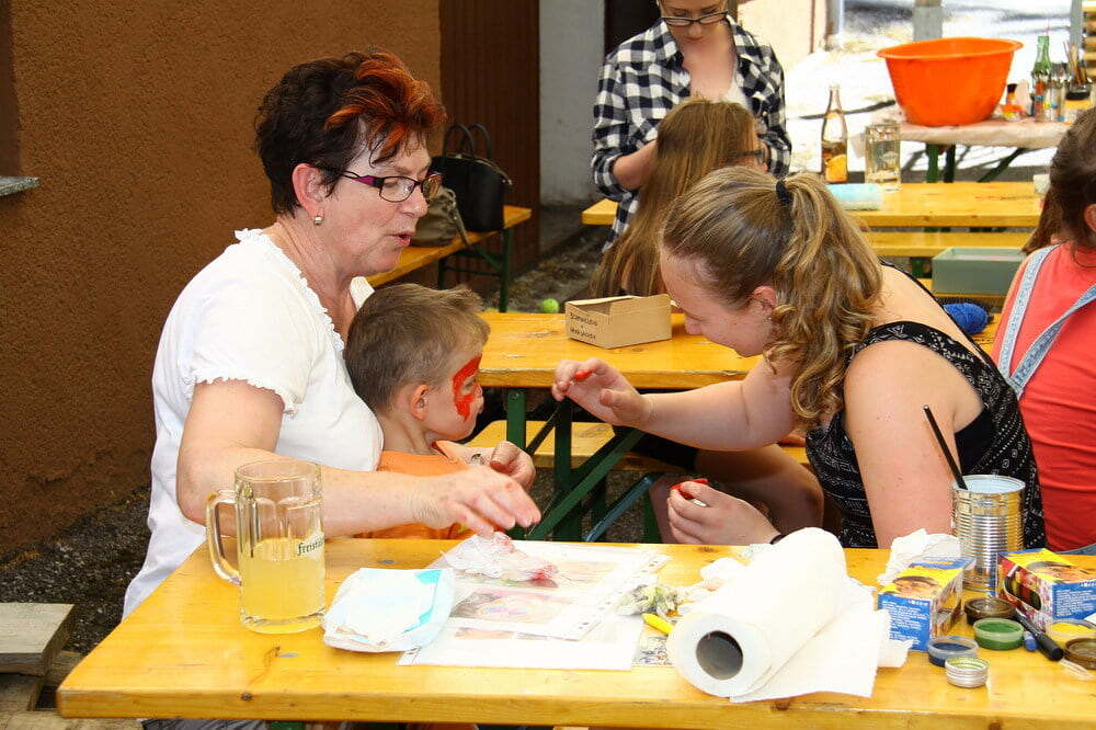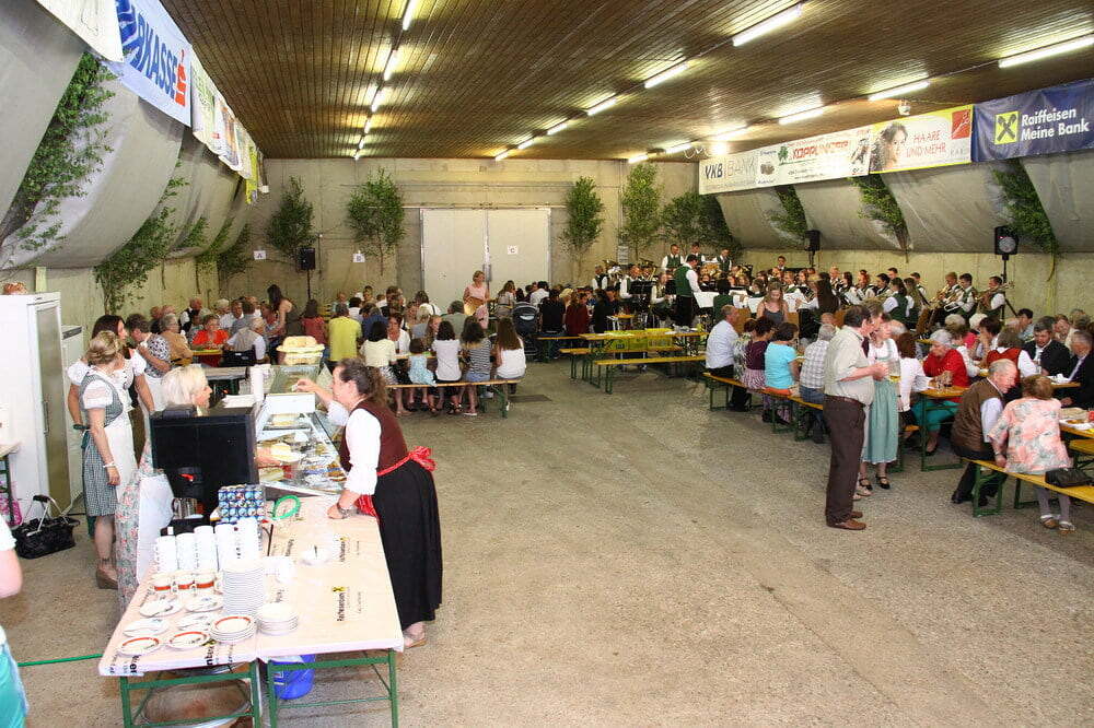 Beim Frühschoppen Getränke konsumiert, musiziert, diskutiert, philosophiert, Schnappschüsse fotografiert, Versteigerung und Kindertombola präsentiert. Währenddessen wird paniert, frittiert, portioniert, Besteck poliert, dressiert und schließlich leckere Speisen aus Küche, Kuchenbar und Eisdiele serviert und schnabuliert.