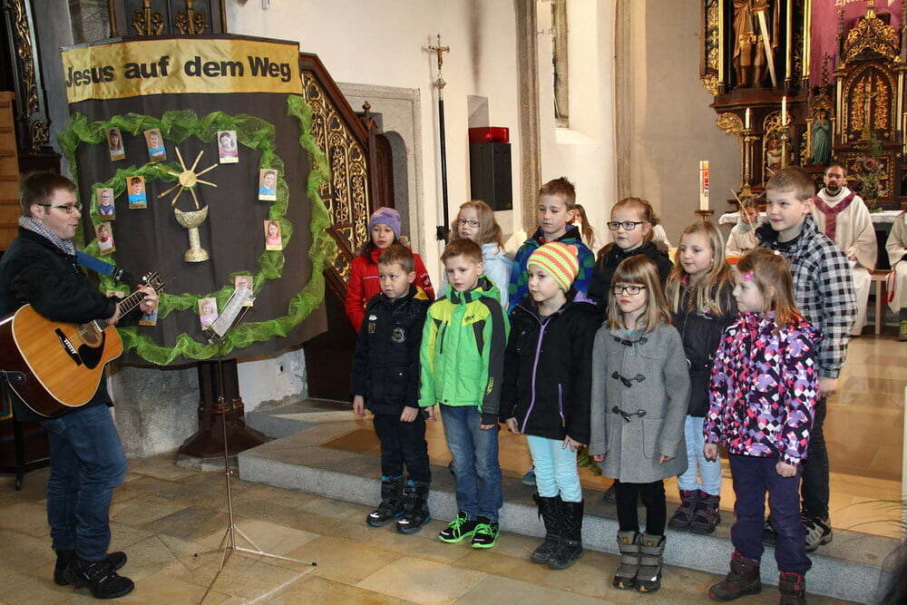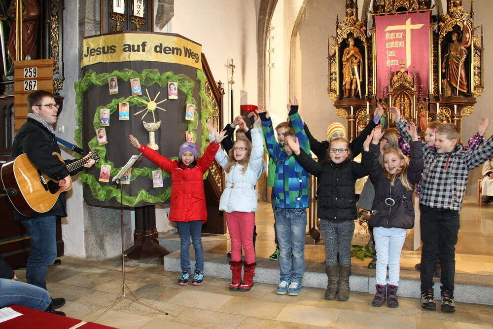 dieses Motto haben heuer die Mädchen und Burschen der 2. Klasse Volksschule für ihre Erstkommunion gewählt. Mit Jesus, aber auch mit der ganzen Pfarrgemeinde wollen sie sich auf den Weg machen und sich für ihren großen Tag, an dem sie das erste Mal die heilige Kommunion empfangen dürfen, vorzubereiten.