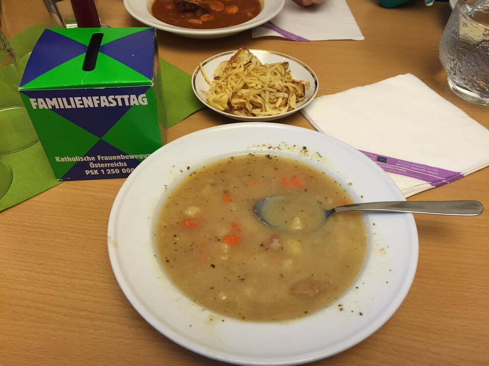 Nach beiden Gottesdiensten, die von der Flötengruppe der Fam. Purkhauser mit lateinamerikanischen Klängen umrahmt wurden, war dann die Pfarrbevölkerung zum Suppenessen in den Pfarrhof geladen. Die kfb und die Umweltgruppe Grünbach kredenzten herrlich duftende und schmeckende Suppen und die Besucher leerten einen Topf nach dem anderen. Ein sicheres Zeichen, dass es allen wunderbar geschmeckt hat.