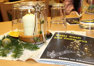 Mit Flöten- und Gitarrenbegleitung von Maria und Monika wurden dann miteinander Adventlieder von früher und heute gesungen.