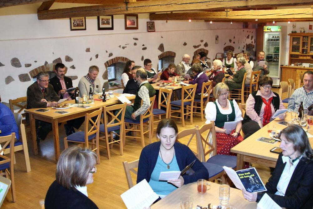 Zwischen den Liederpausen zauberten Verse und Kurzgeschichten, von Wolfgang Rainer zum Besten gegeben, so manchen Schmunzler, aber auch durchaus nachdenkliche Züge in die Gesichter der Besucherinnen und Besucher.