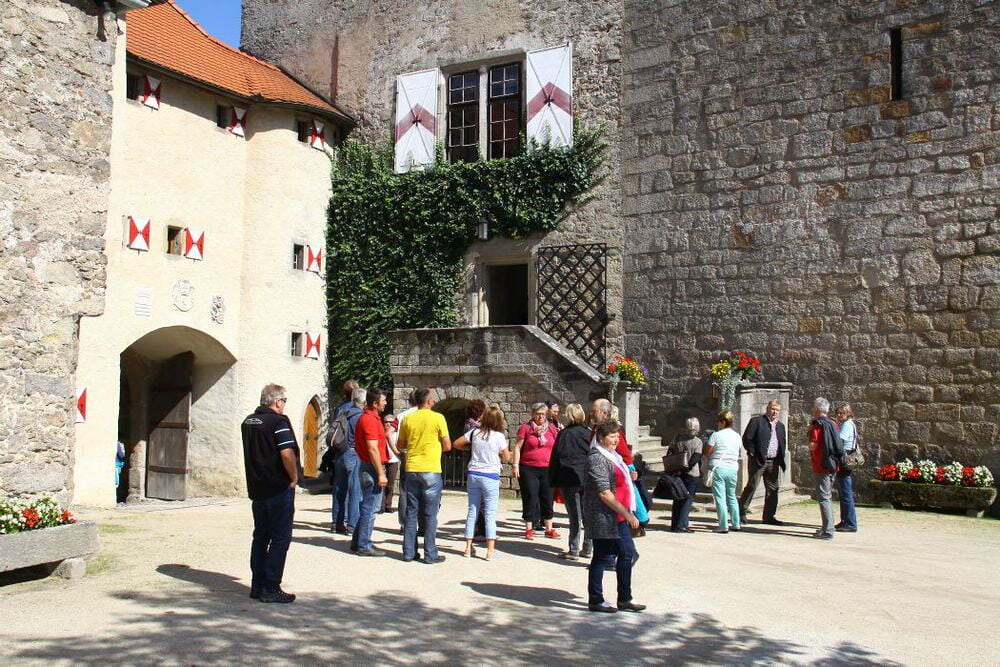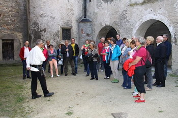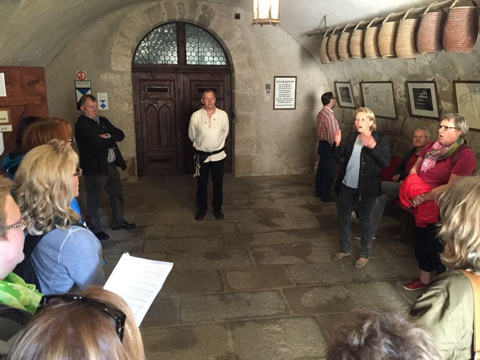 In der Zwischenzeit bereitete uns Herr Stepan mit seinem Team im Gasthaus Percy Waldviertler Schmankerl zu. Wir bedankten uns für das gute Service im nördlichsten Gasthaus Österreichs mit einem Ständchen und brachen auf zur Burg Heidenreichstein, wo uns eine außergewöhnliche Führung erwartete. Herr Reinhard weihte uns mit sehr viel Humor und theatralischem Können in die Geschichte und die Besonderheiten dieser Wasserburg ein.