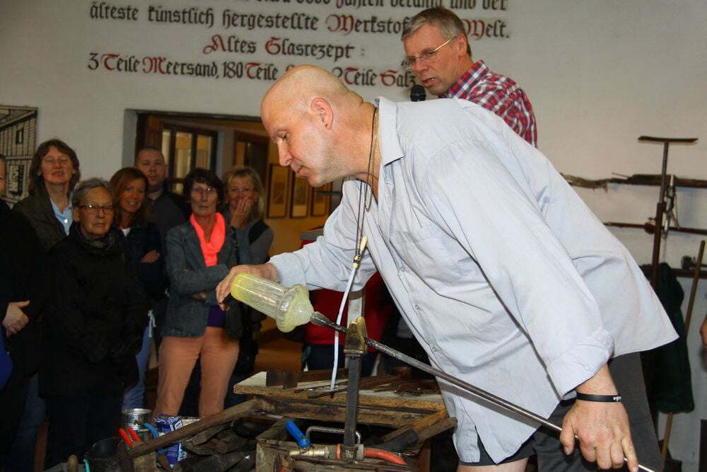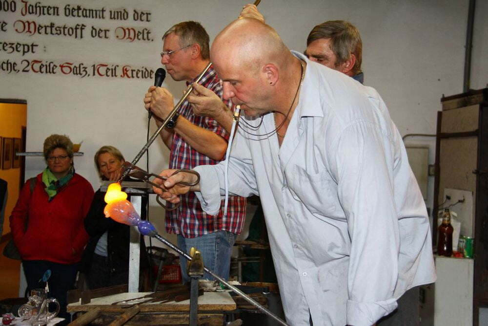 Nach einer kurzen Anreise stärkten sich die 31 Teilnehmer bei einer Jause für das bevorstehende Programm, das mit einer interessanten Vorführung der Kunst des Glasblasens startete. Schauplatz dafür war die Waldglashütte der Familie Zalto in Neunagelberg.