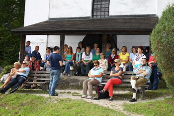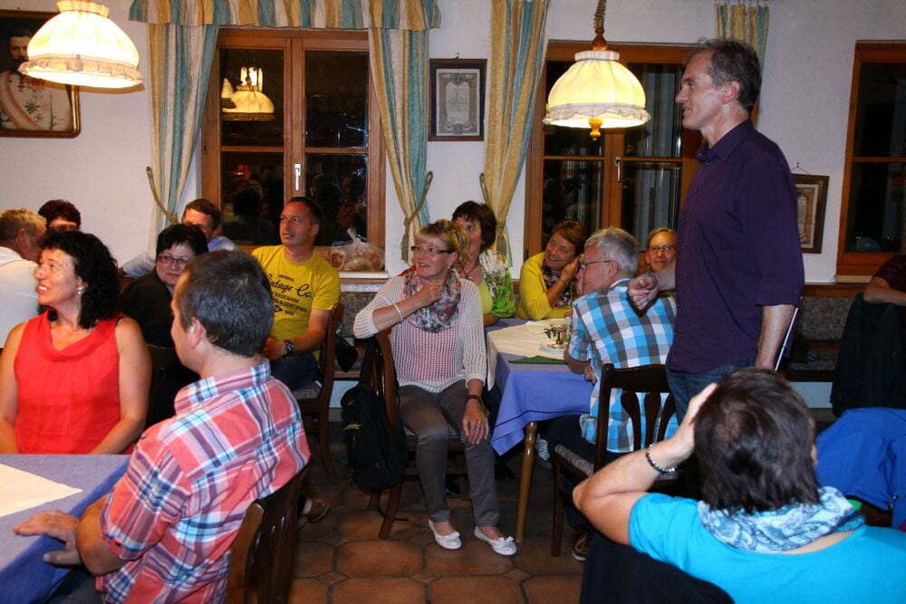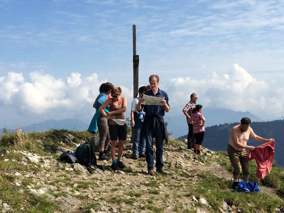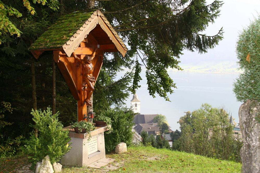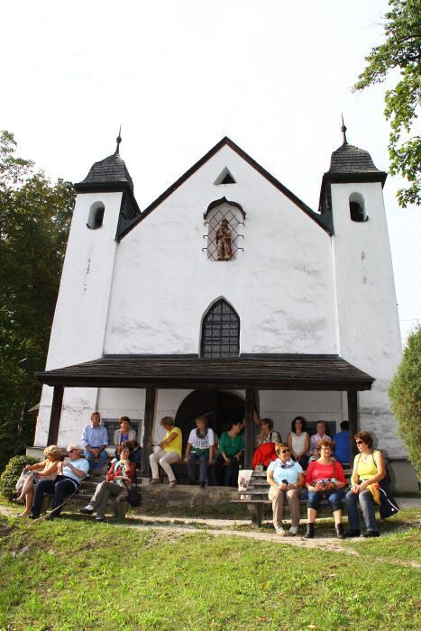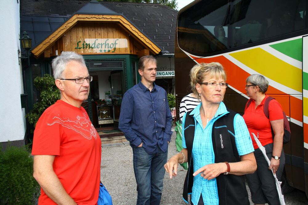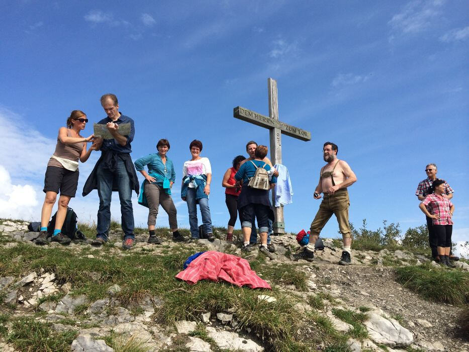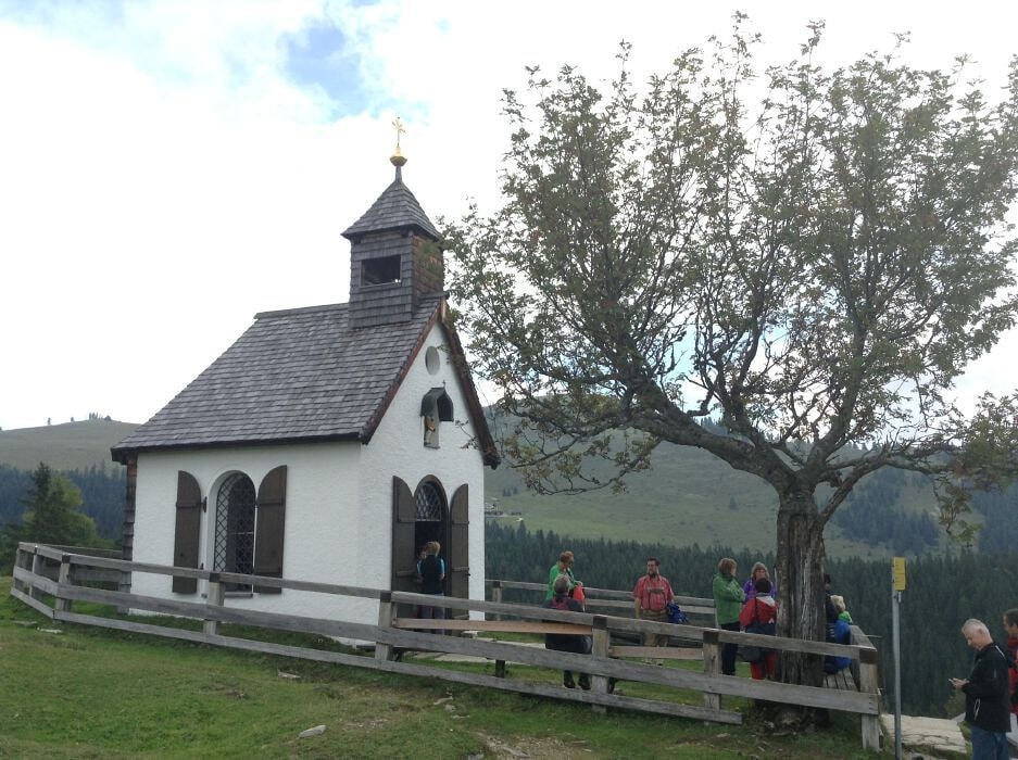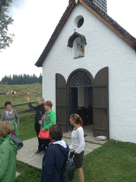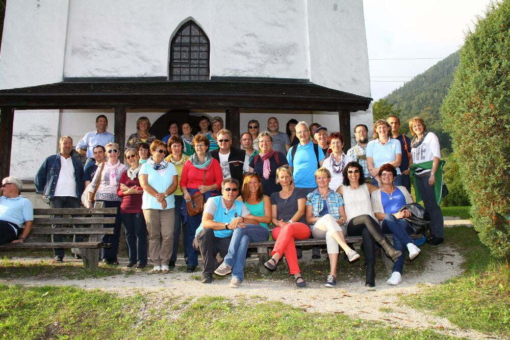 Der kurze Anstieg zur Kapelle auf den nahe gelegen Kalvarienberg lohnte sich allemal. Nach einer kurzen Andacht, die uns dankenswerter Weise Alois Wiesinger vorbereitet hat, sangen wir das Lied „Über’n See“ von Lorenz Maierhofer.