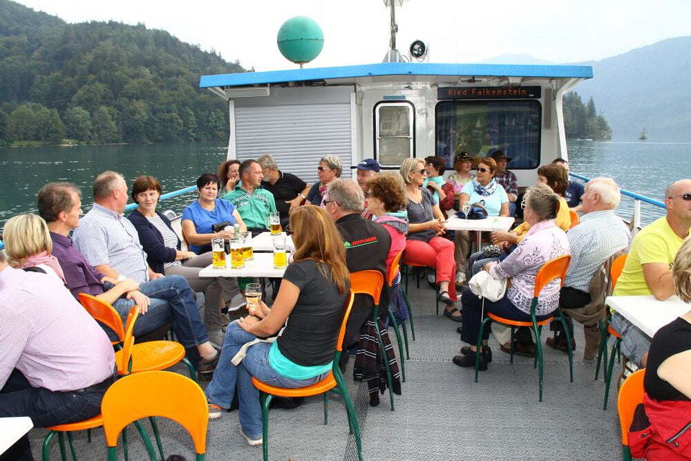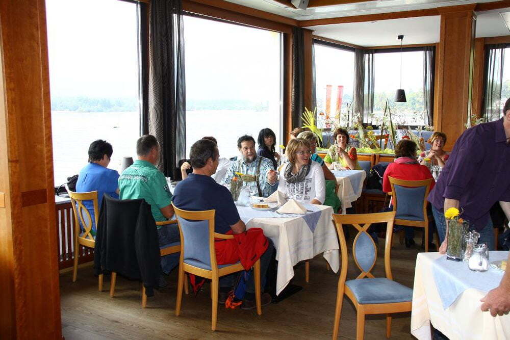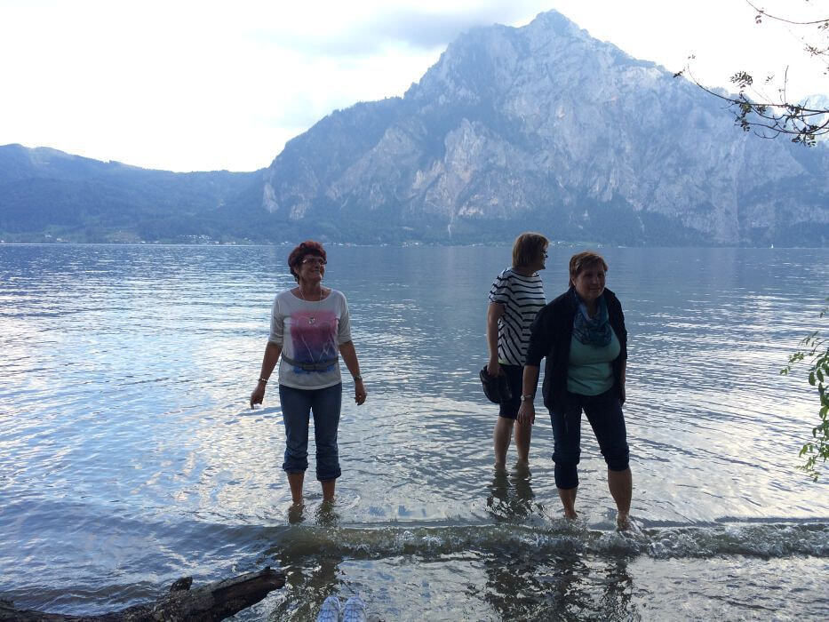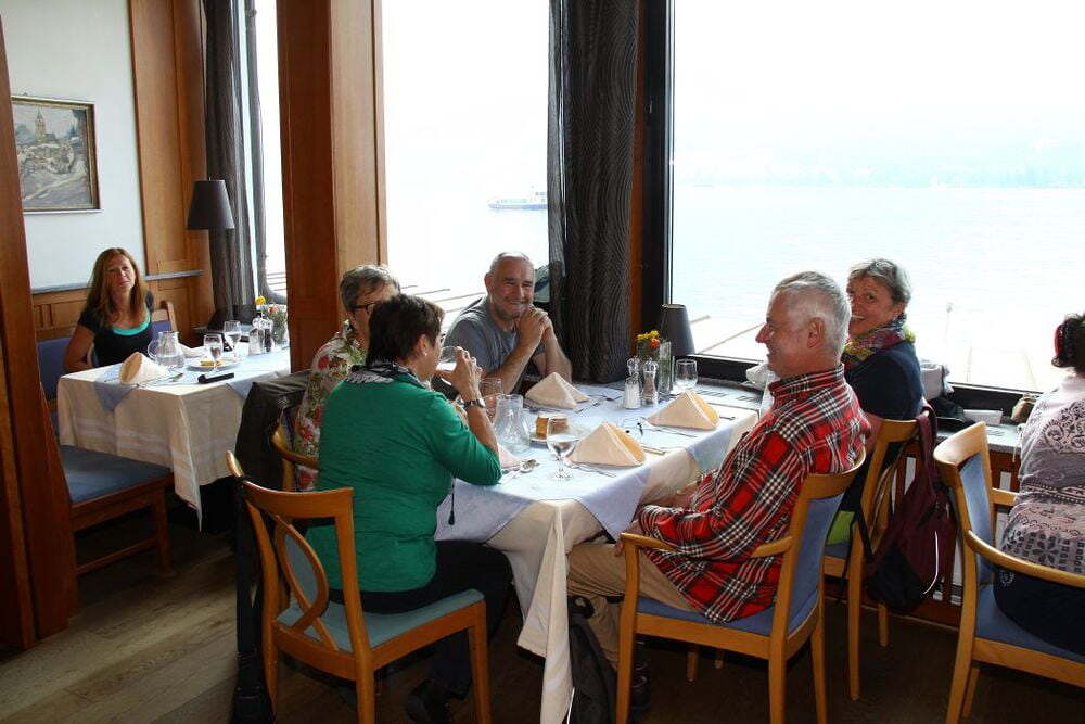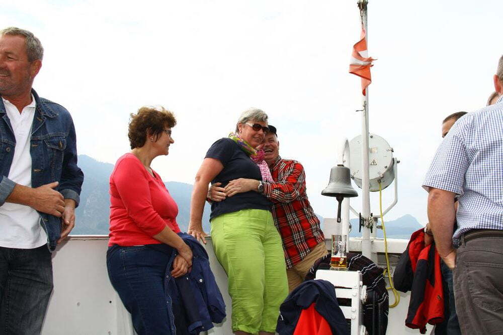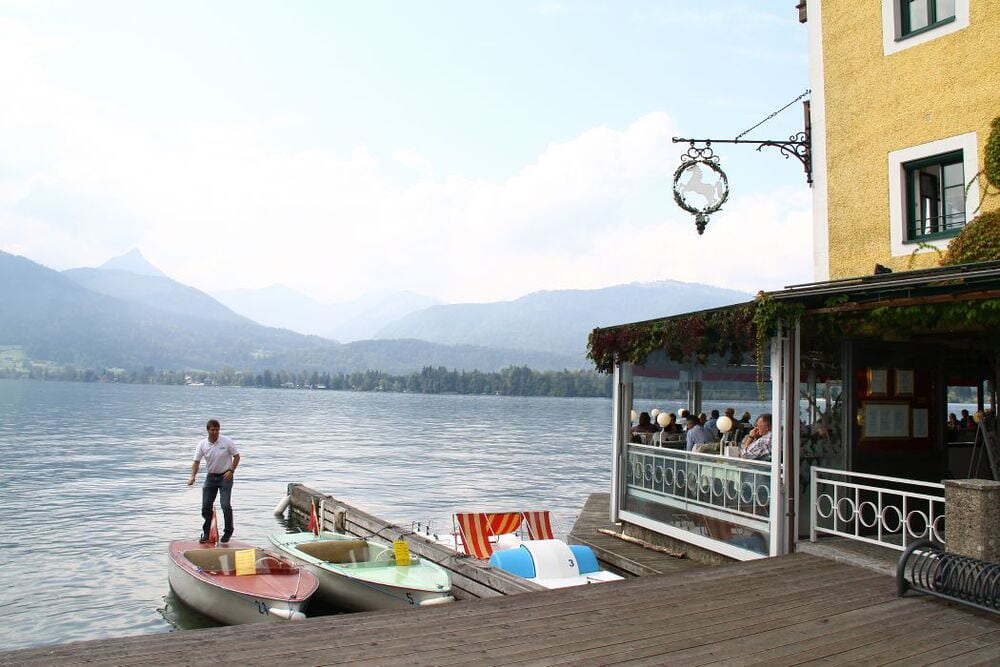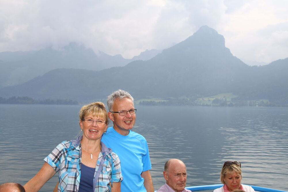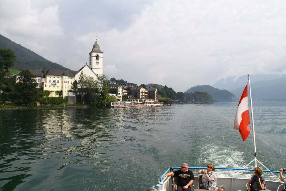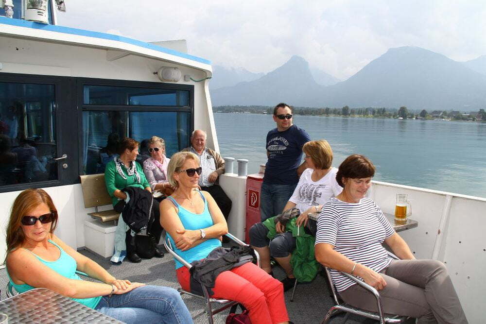 Mit satten Bäuchen stachen wir am sonnigen Nachmittag in See und setzten mit dem Schiff nach St. Gilgen über. Dort angekommen, zog ein kurzer aber kräftiger Gewitterregen über uns her. Dies war die Gelegenheit, um eine gemütliche Kaffeepause einzulegen, bevor es um 16:00 Uhr wieder mit Sonnenschein zurück nach St. Wolfgang ging.