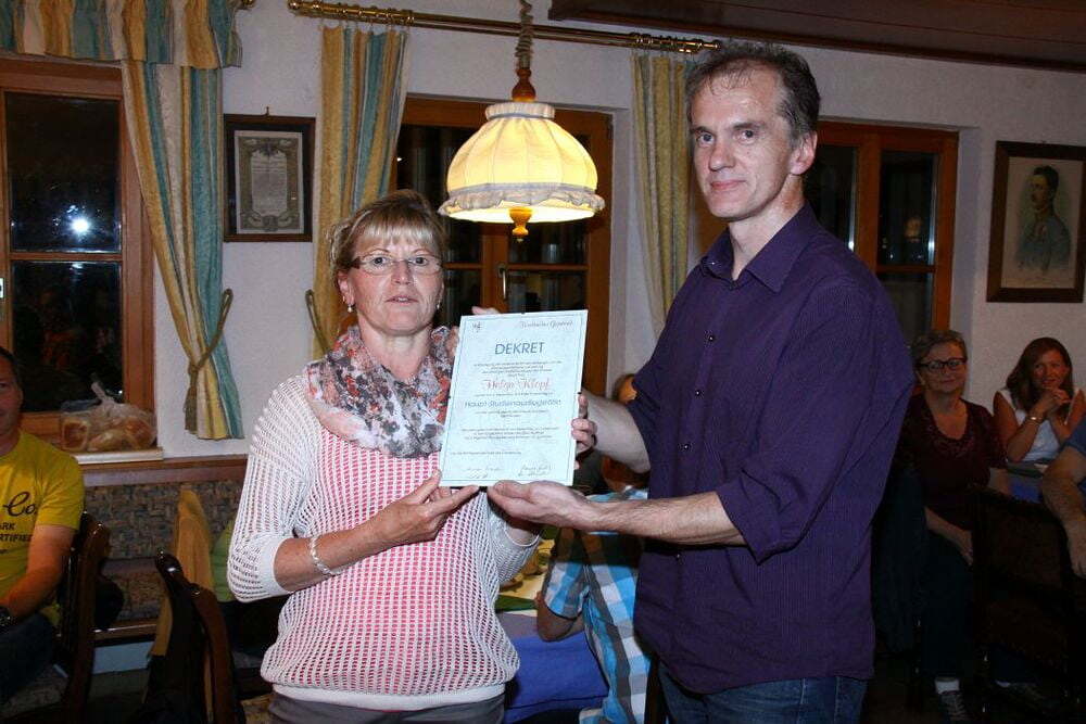 Unserer Organisatorin Helga Klopf danken wir für dieses wunderschöne Reiseziel und die Mühen, die sie auf sich genommen hat für diese 2 Tage. Anlässlich ihrer mittlerweile 10jährigen Tätigkeit als Ausflugs-Organisatorin wurde ihr mit einem Dekret von höchster Stelle der Titel „Haupt-Studienausflugsrätin“ verliehen.