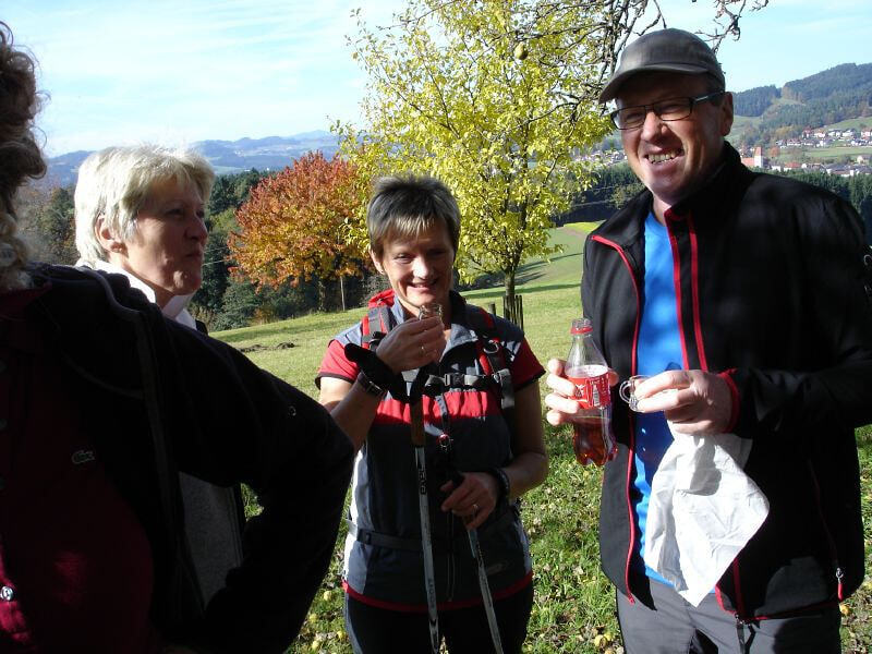 Gestärkt nach einem exzellenten Mittagessen bestiegen wir den Buchberg. Alle TeilnehmerInnen erreichten das Ziel. Bei einer Bergandacht lobten wir Gott und dankten für den schönen Tag, für die gute Gemeinschaft und für die Fröhlichkeit, die uns auf unserem Weg begleitete.